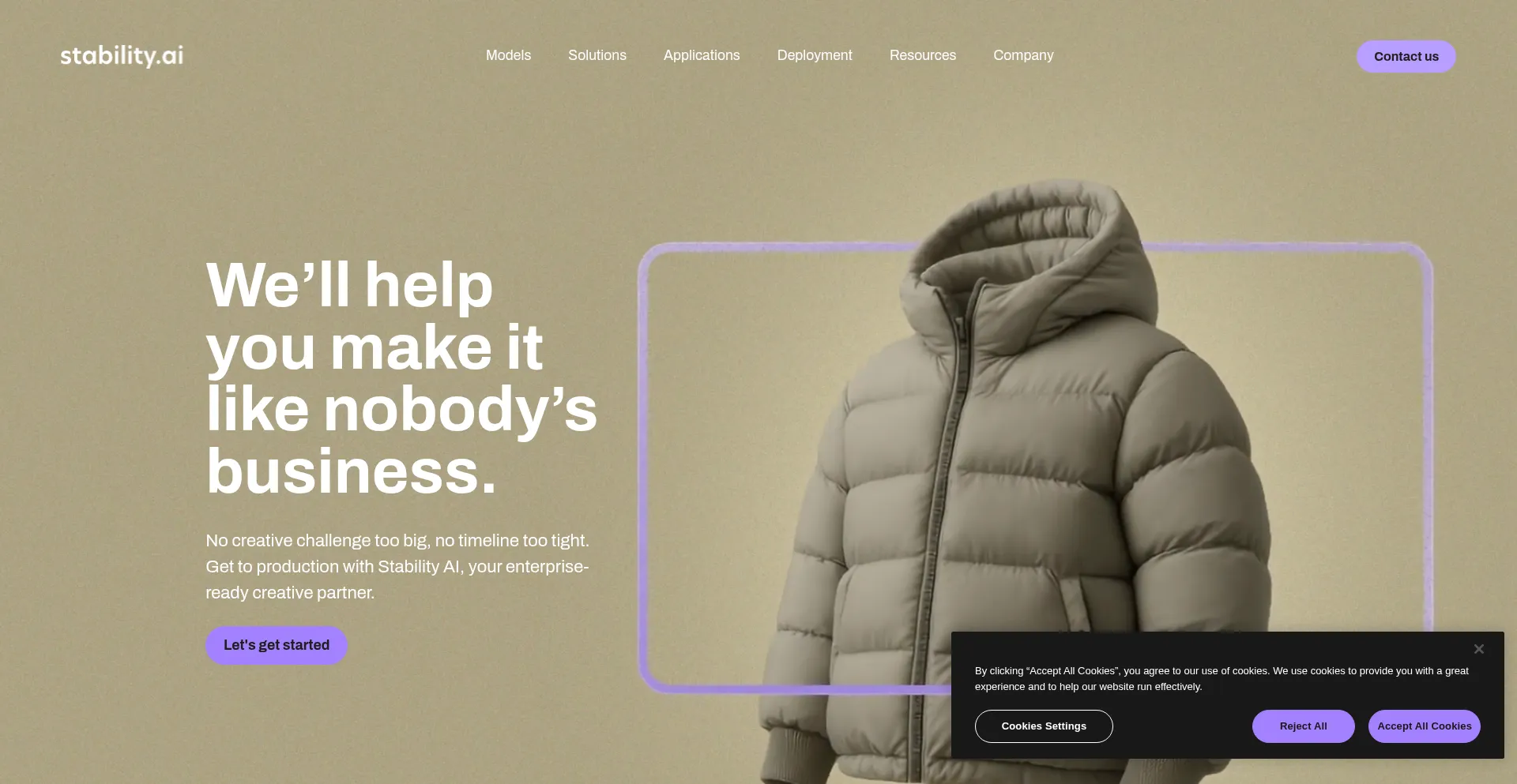 Le site web implémente des mécanismes de consentement aux cookies en conformité avec les réglementations de confidentialité telles que RGPD ou CCPA. Cela démontre que stability.ai adhÚre aux standards de protection des données et fournit aux utilisateurs un contrÎle sur les pratiques de collecte de données personnelles.