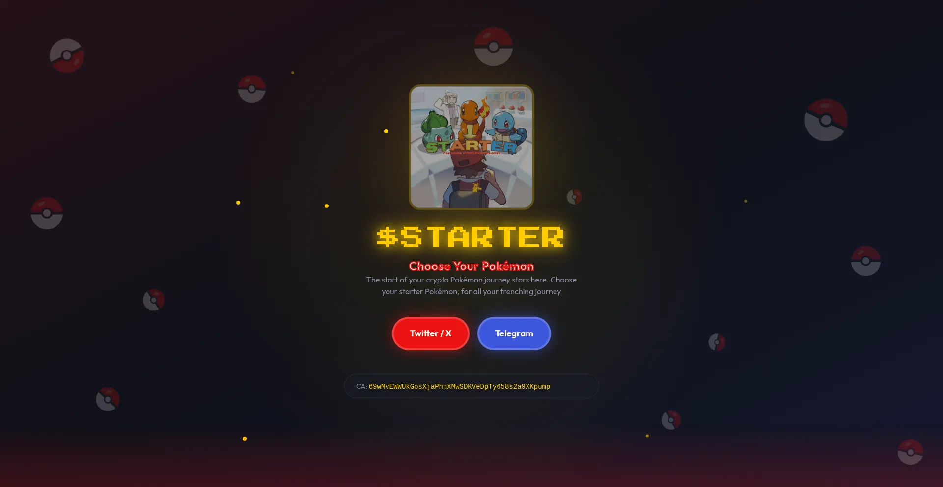 The ultimate Pokemon-inspired memecoin. Choose your starter and join the adventure!