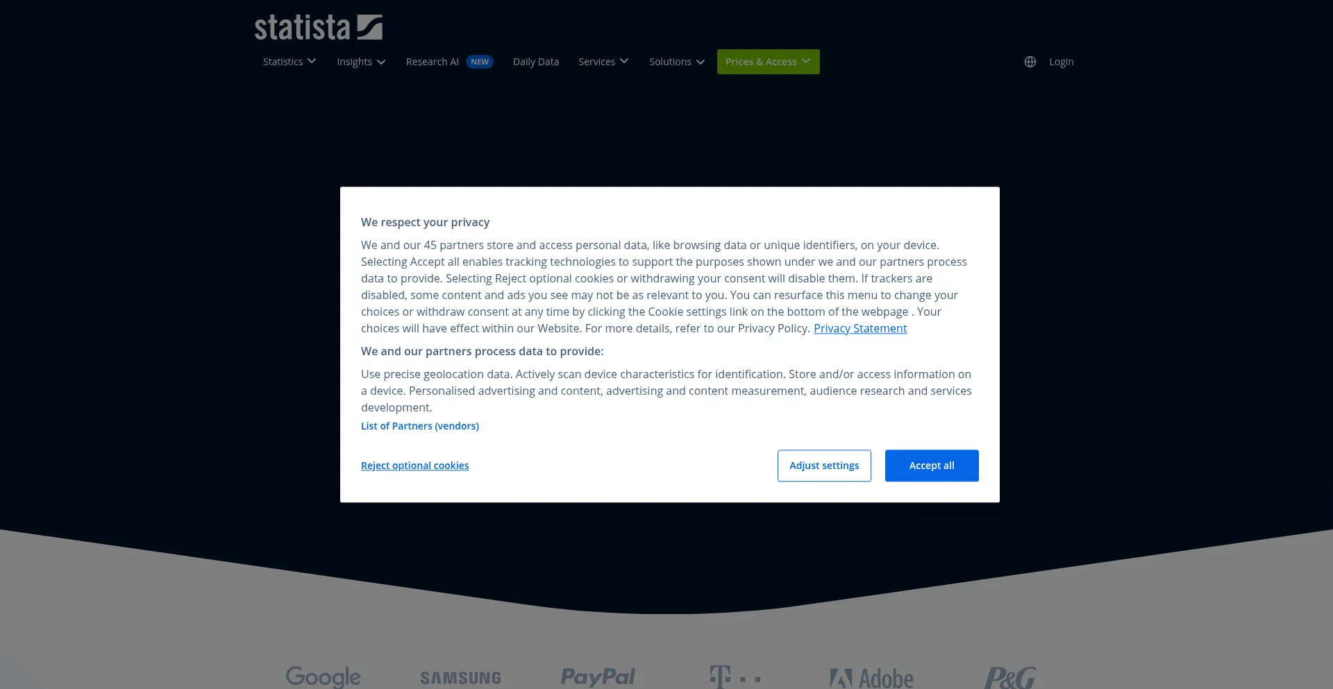 Le site web implémente des mécanismes de consentement aux cookies en conformité avec les réglementations de confidentialité telles que RGPD ou CCPA. Cela démontre que statista.com adhÚre aux standards de protection des données et fournit aux utilisateurs un contrÎle sur les pratiques de collecte de données personnelles.