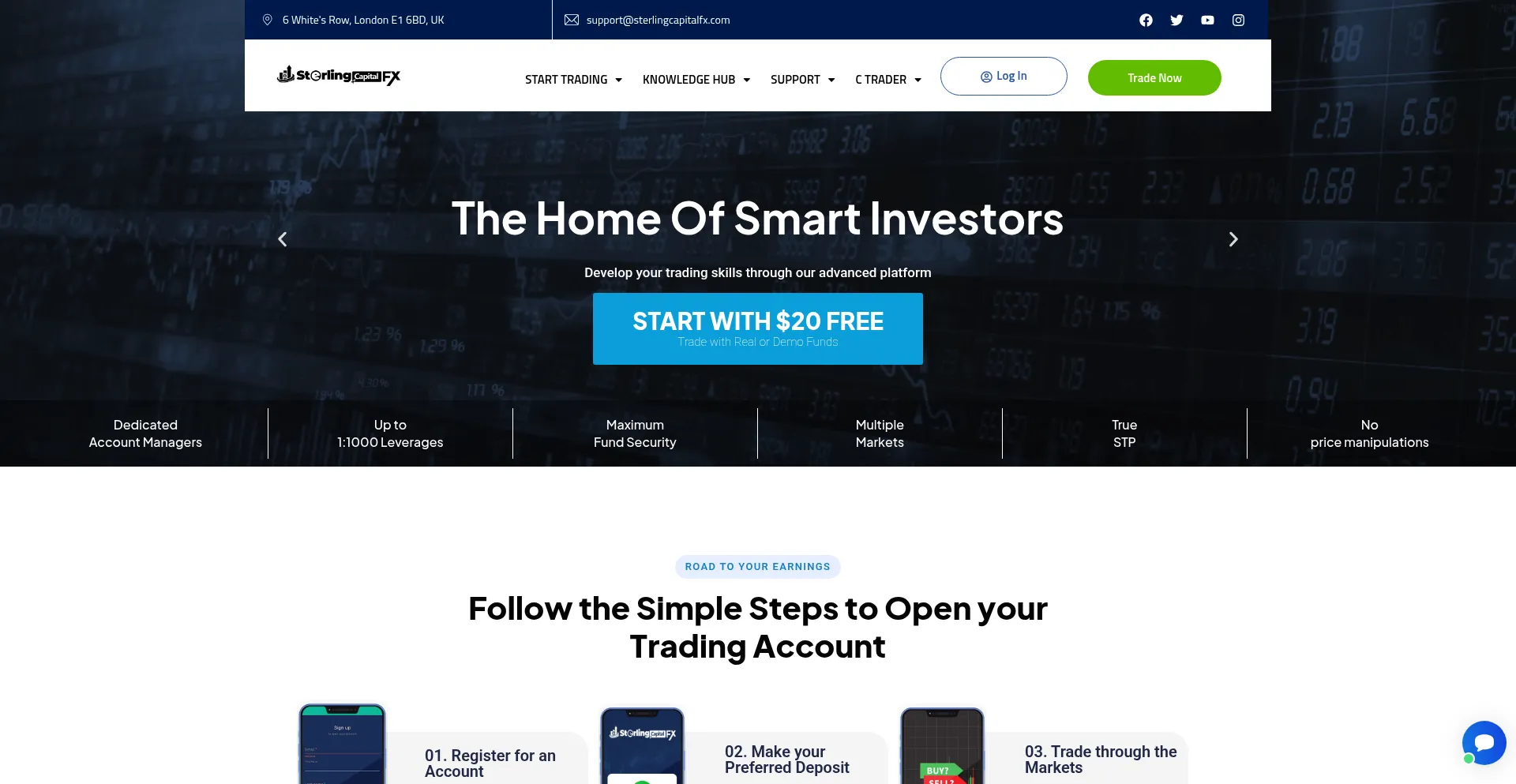 Bien que Sterlingcapitalfx.com ne soit peut-ĂȘtre pas une fraude complĂšte, il prĂ©sente trop de problĂšmes pour ĂȘtre considĂ©rĂ© comme digne de confiance. La plupart des gens feraient mieux de l'Ă©viter entiĂšrement.
