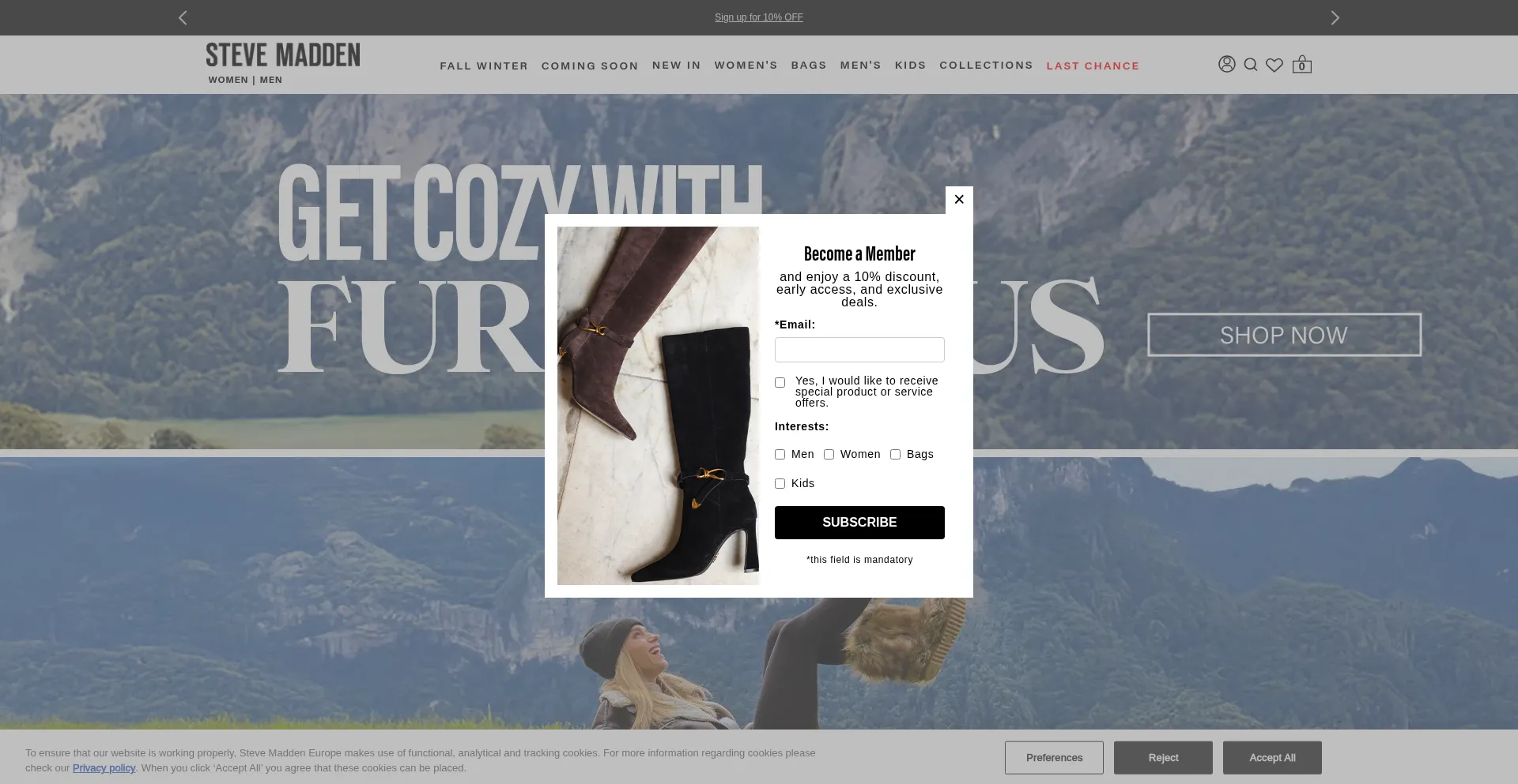 Le site web implémente des mécanismes de consentement aux cookies en conformité avec les réglementations de confidentialité telles que RGPD ou CCPA. Cela démontre que stevemadden.eu adhÚre aux standards de protection des données et fournit aux utilisateurs un contrÎle sur les pratiques de collecte de données personnelles.
