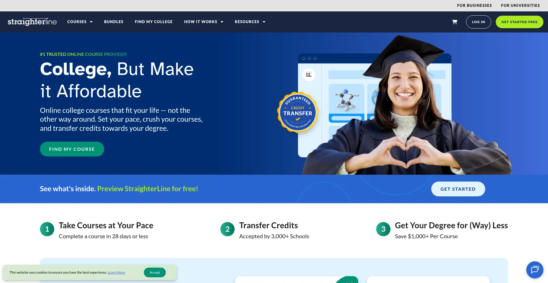 Take StraighterLine low cost online courses for college credit. Credits are easily transferable to our partner colleges. Start a free trial today!