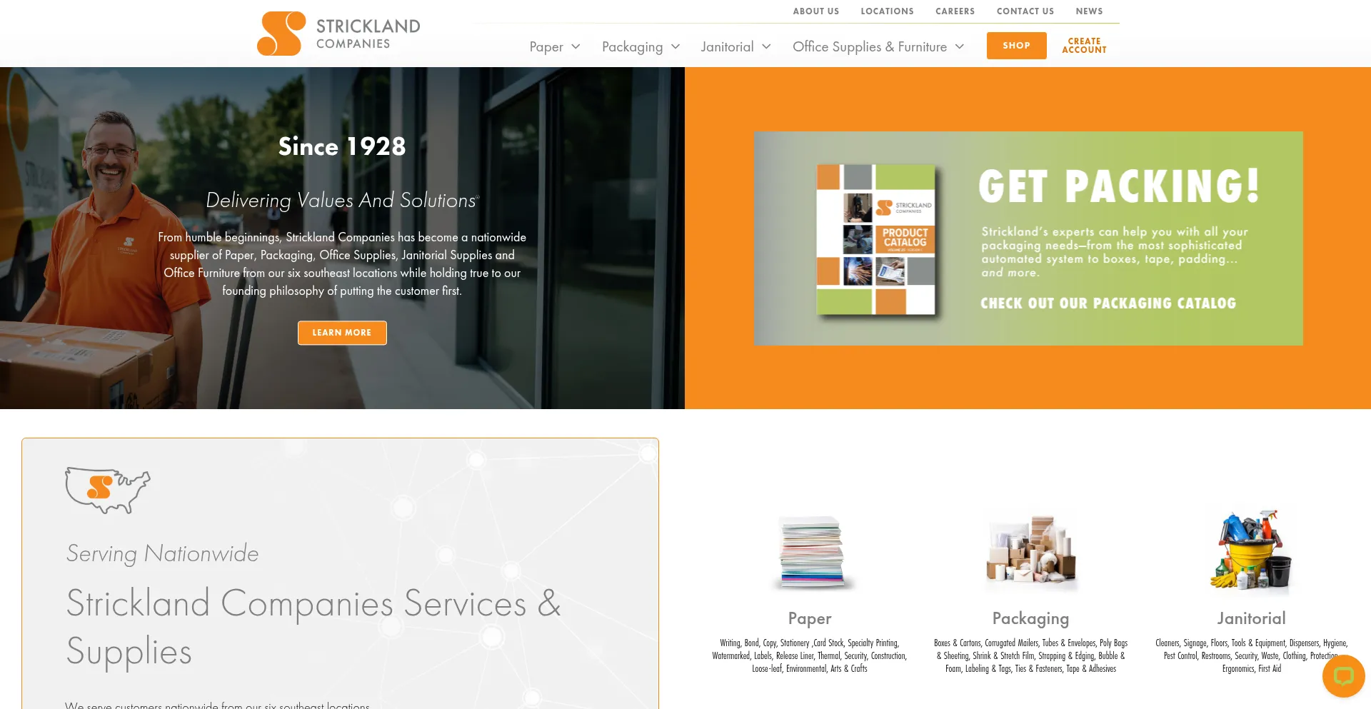 Strickland Companies. Delivering values and solutions. Serving nationwide. Strickland supplier of paper, packaging, and office.