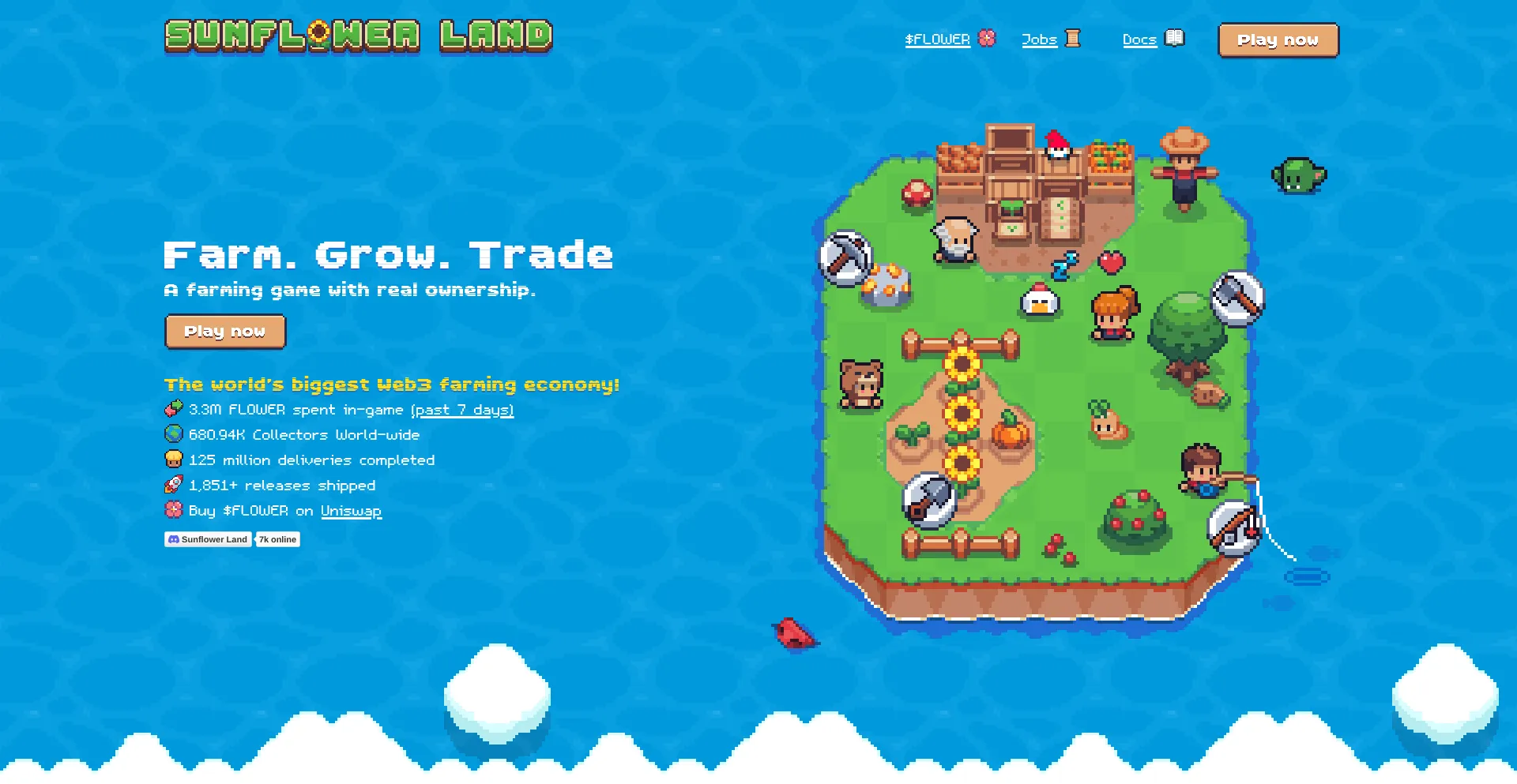 Join 190,000+ farmers in Sunflower Land, the biggest Web3 farming economy on Polygon. Farm, trade, and craft NFTs in a play-to-own game.