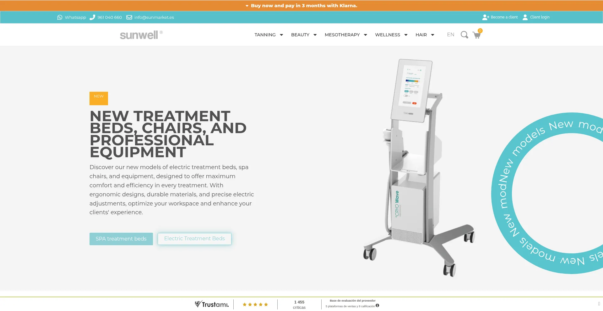 At Sunwell - Sunmarket, we supply professional and home-use tanning beds, UVA tubes, aesthetic equipment, electric treatment tables and spa equipment, mesotherapy products for d...