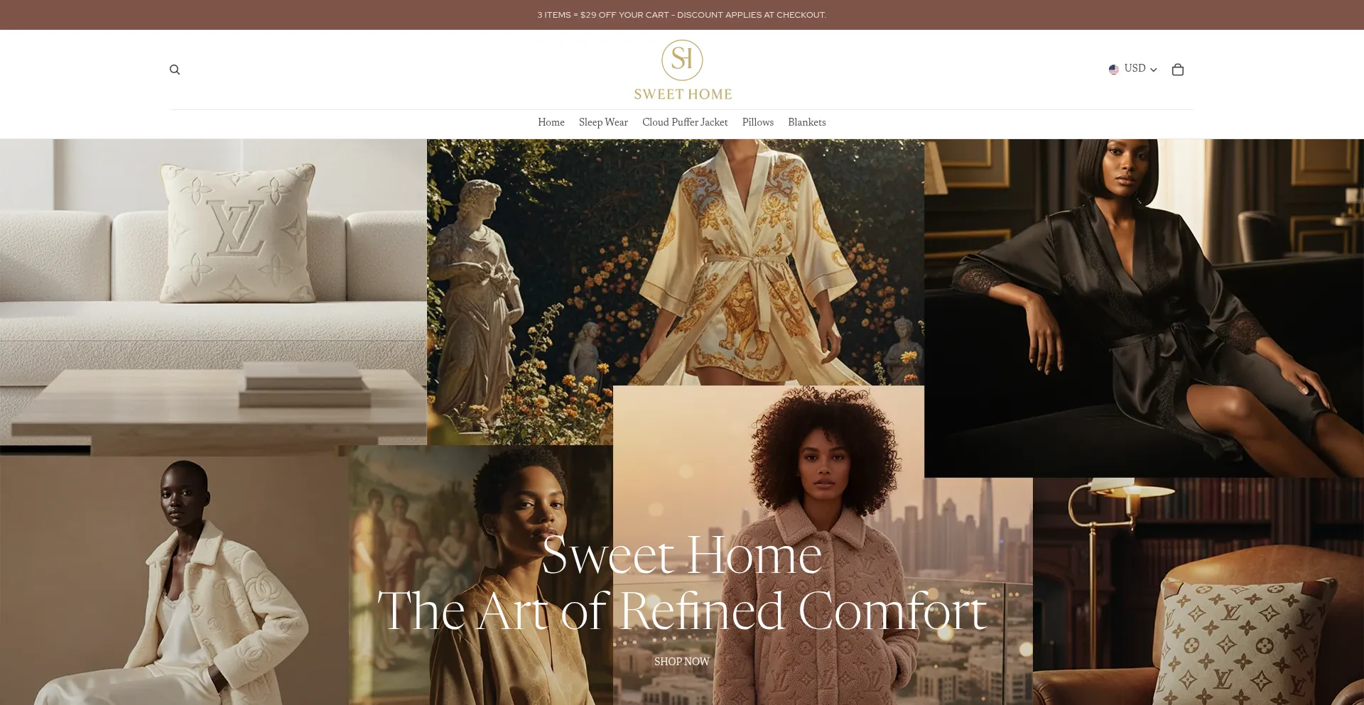 Discover Sweet Home, where luxury meets comfort. Explore our exclusive collection of robes, puffers, and designer pillows crafted for elegance and serenity. Redefine your daily ...