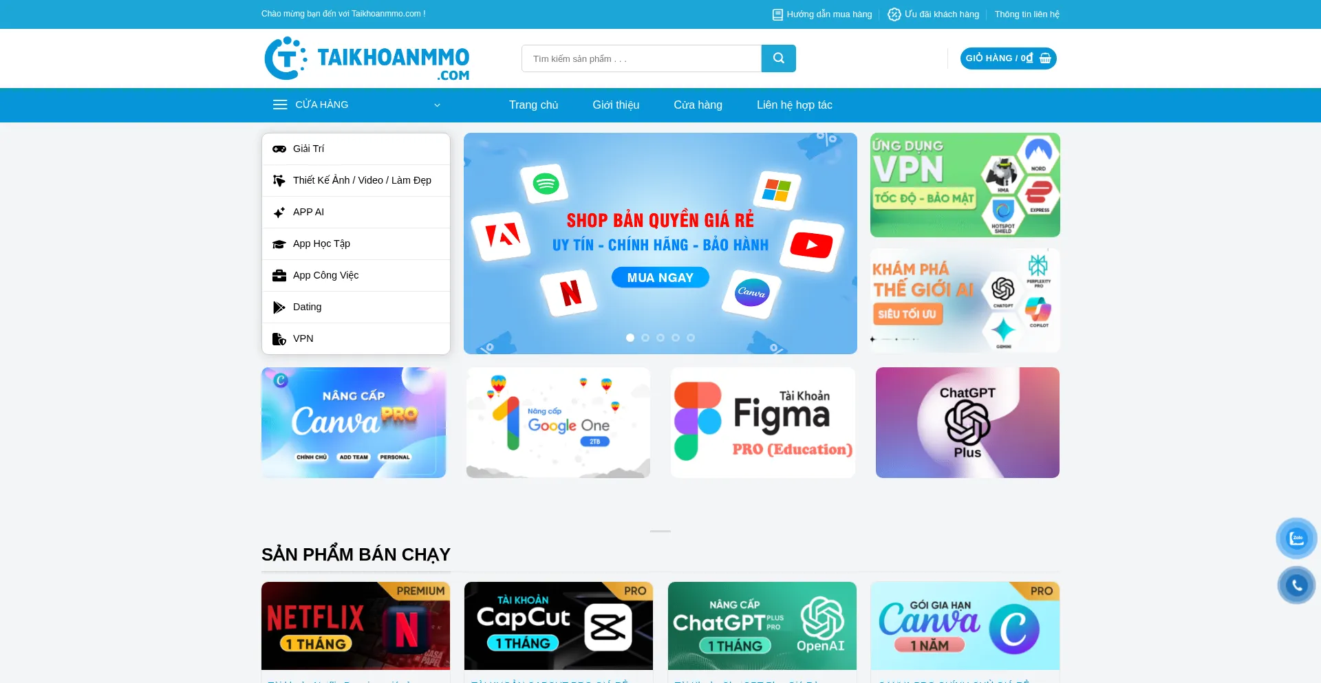 Cung cáș„p pháș§n mềm báșŁn quyền, game báșŁn quyền lớn nháș„t Việt Nam. Đáș§y đủ cĂĄc sáșŁn pháș©m: Netflix Premium, Youtube Premium, Chat GPT Pro, Canva Pro, Ngh...