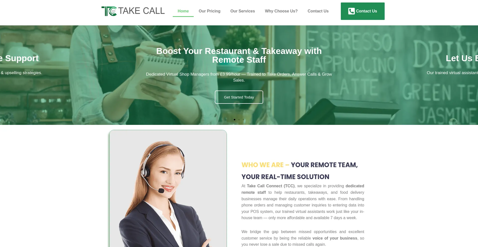 At Take Call Connect (TCC), we specialize in providing dedicated remote staff to help restaurants, takeaways, and food delivery businesses manage their daily
