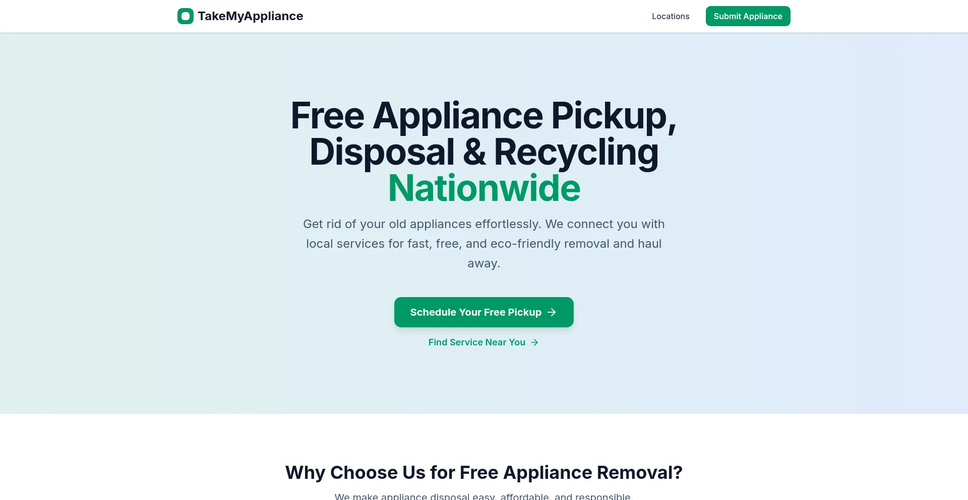 Get free nationwide appliance pickup and recycling services. We connect you with local haulers for eco-friendly disposal of refrigerators, washers, dryers, and more.