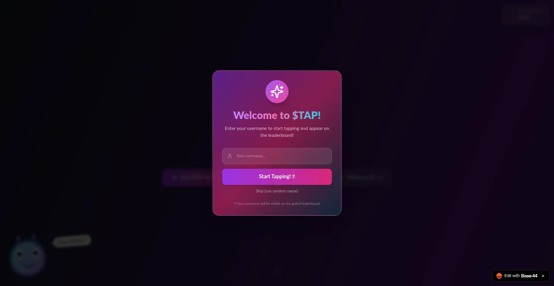 Enter your username to start tapping and appear on the leaderboard!
