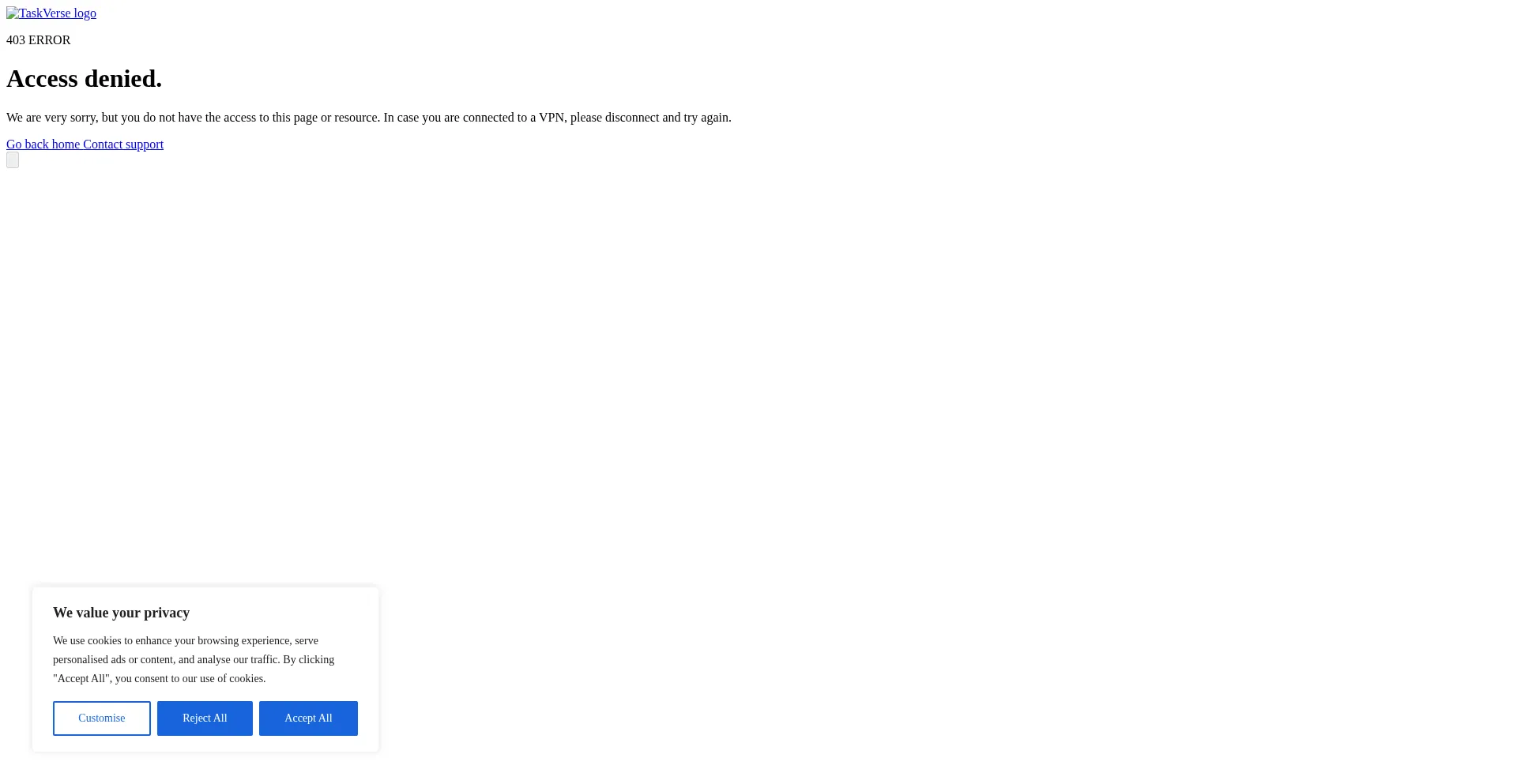 Le site web implémente des mécanismes de consentement aux cookies en conformité avec les réglementations de confidentialité telles que RGPD ou CCPA. Cela démontre que taskverse.com adhÚre aux standards de protection des données et fournit aux utilisateurs un contrÎle sur les pratiques de collecte de données personnelles.