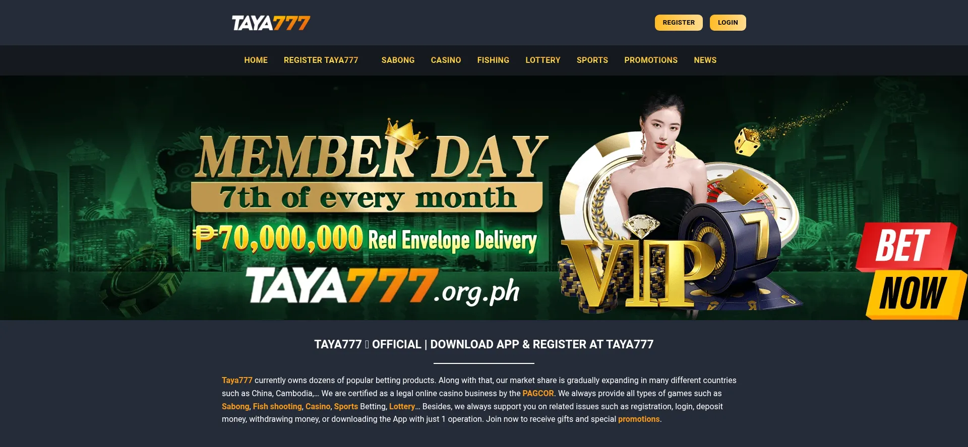 Taya777 provides betting games such as sports betting, lottery, fish shooting, and casino. Currently, we are having many extremely hot promotions this August.