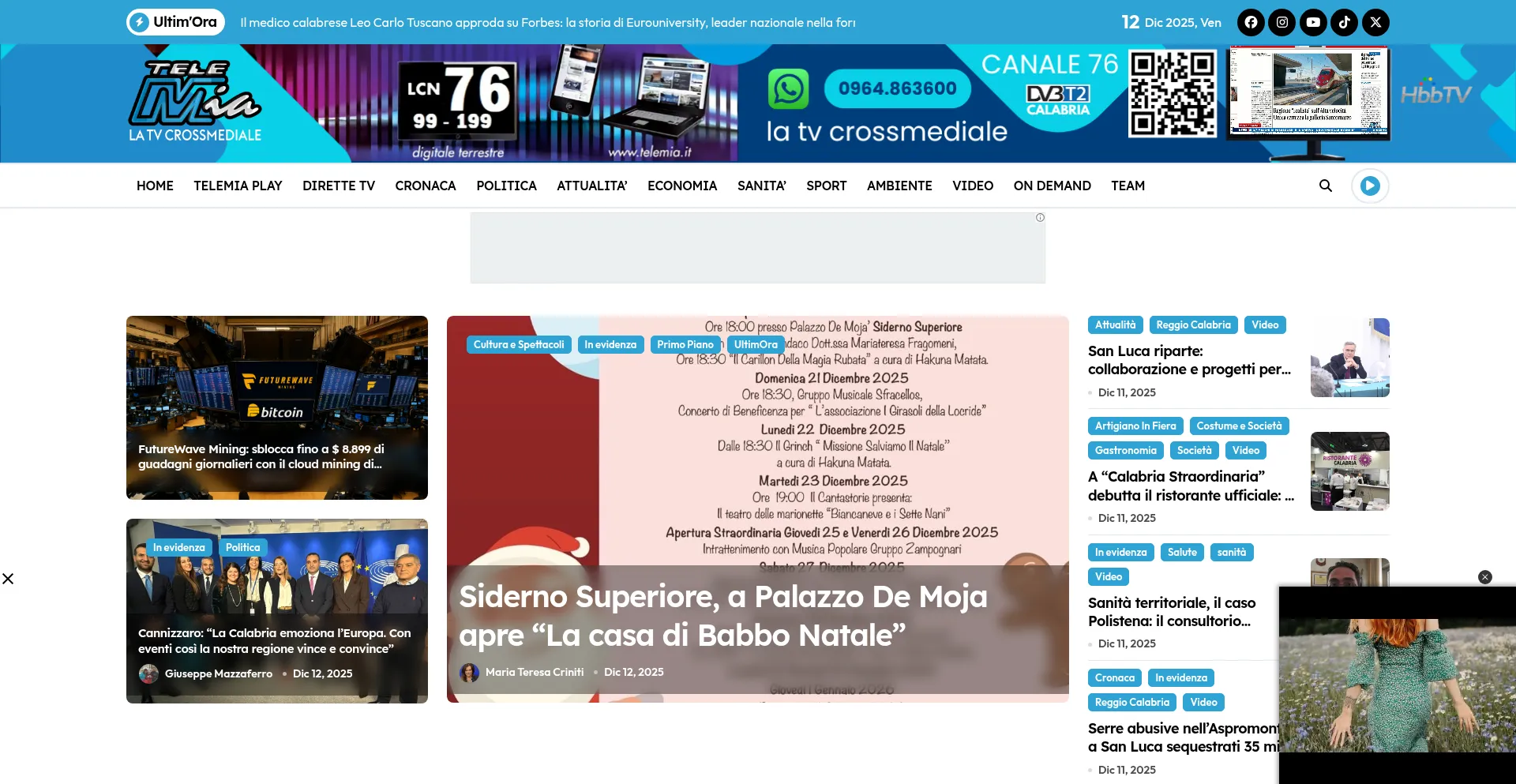 Telemia – Telemia, la tv crossmediale a portata di click. Cronaca, politica, economia, cultura e sport dalla Calabria in tempo reale.