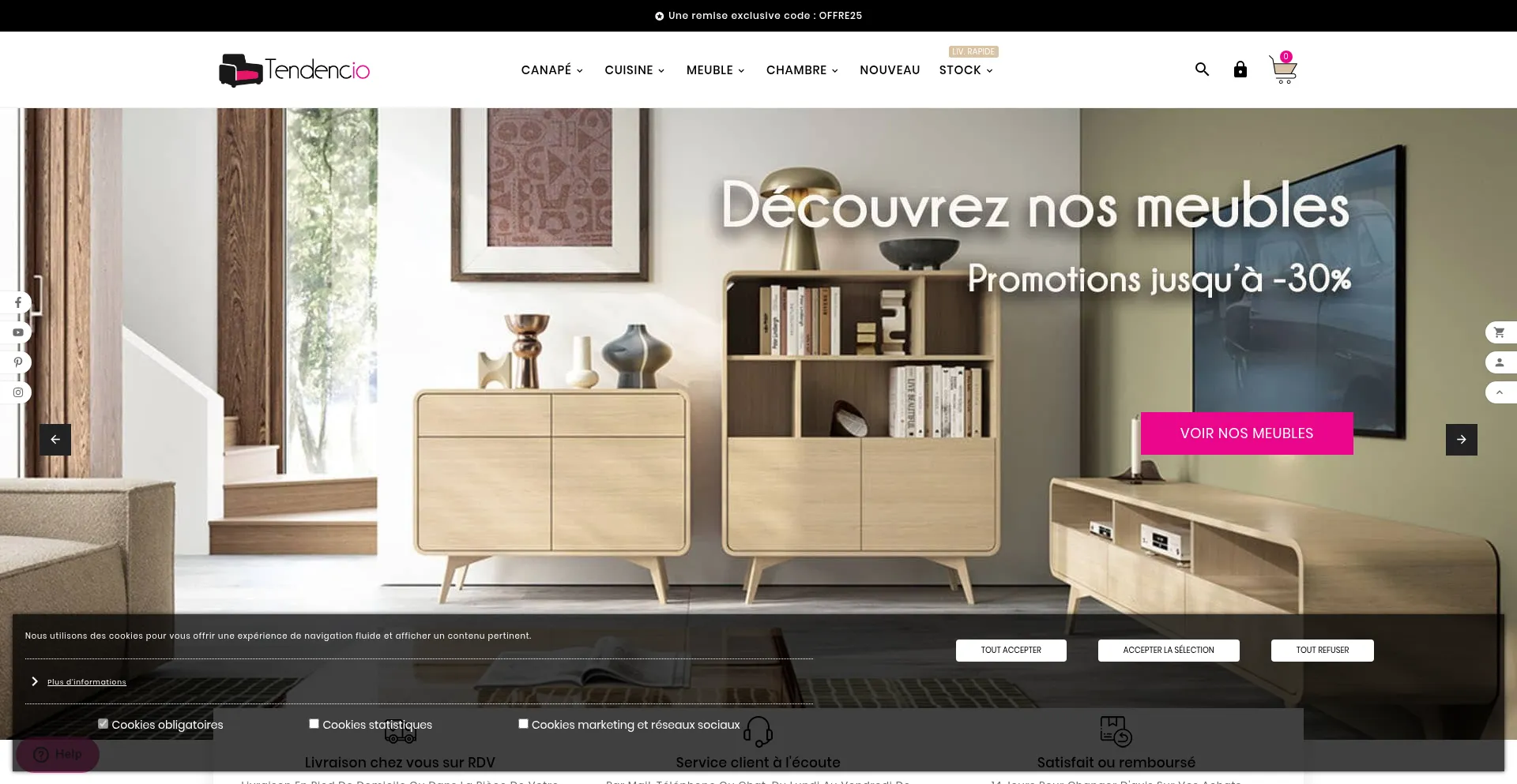 Les nouvelles tendances canapé, cuisine, meuble de salon ou salle à manger. Du Mobilier design et moderne pas cher. Paiement en 4 fois possible.