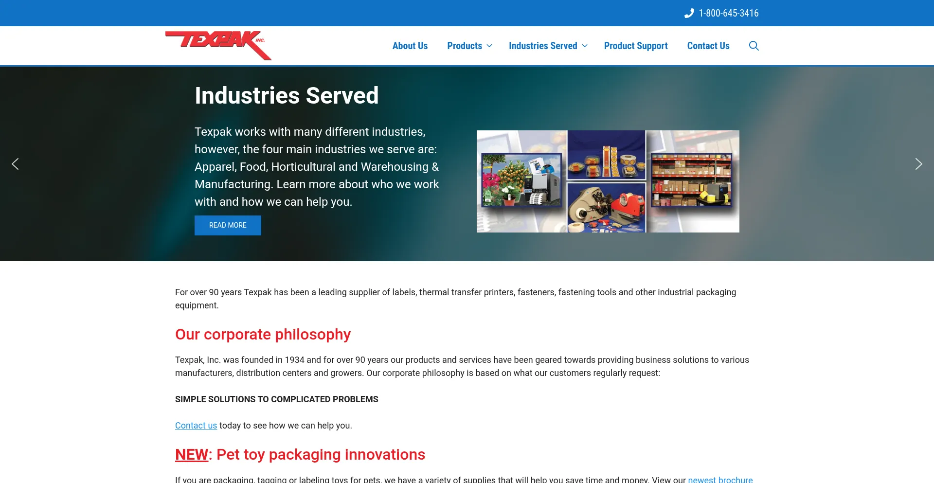 For over 90 years Texpak has been a leading supplier of labels, thermal transfer printers, fasteners, fastening tools and other industrial packaging equipment.