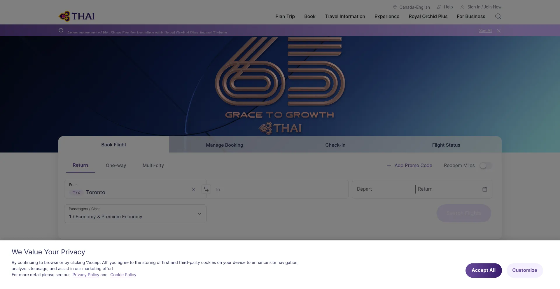 Book flight tickets to Thailand, Bangkok, Saudi and other international destinations with Thai Airways. Manage your booking and check-in online. Book now!