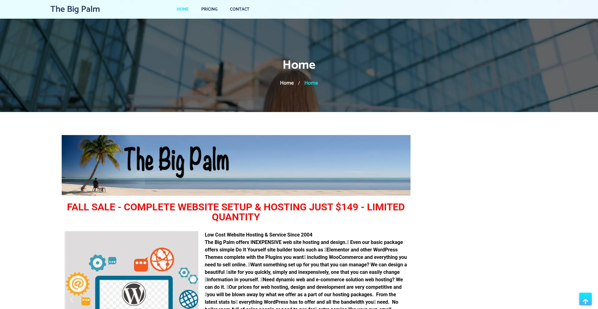 Low Cost Website Hosting & Service Since 2004The Big Palm offers INEXPENSIVE web site hosting and design.