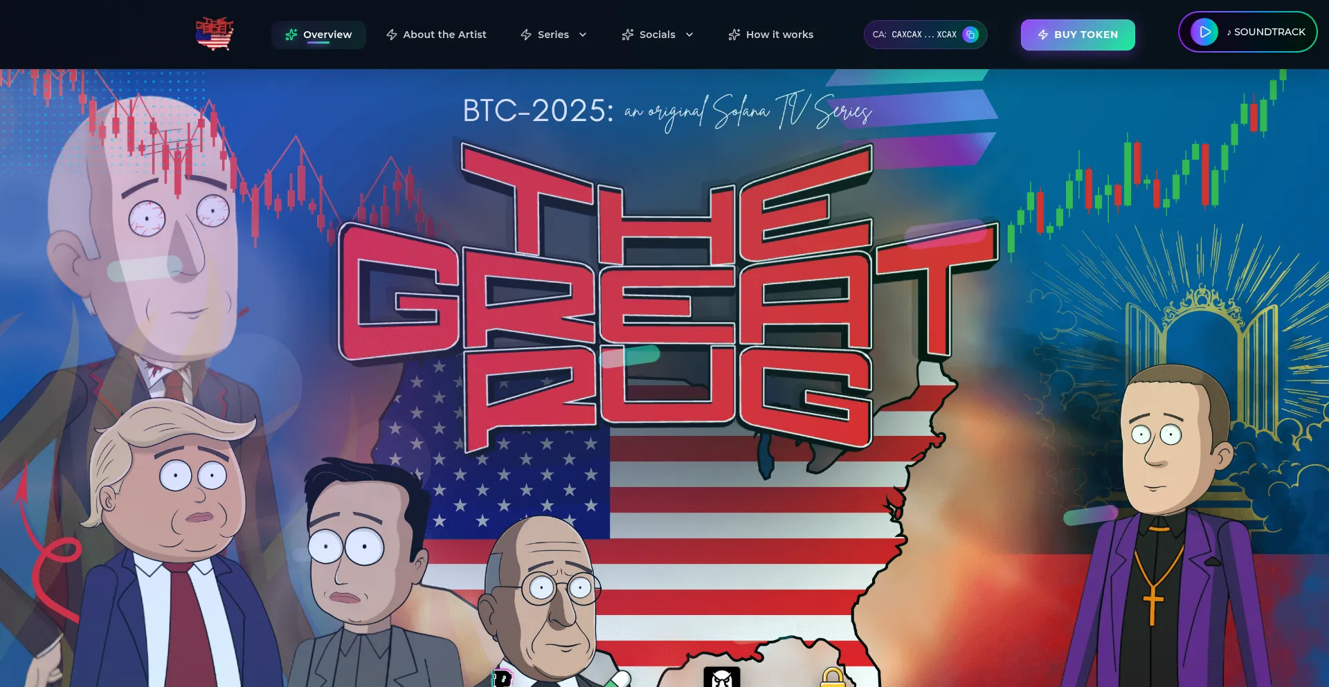 BTC-2025: An original Solana TV Series. The first cinematic memecoin that tells a story. Join Trump, Elon, Solao, and the crew in the wildest crypto adventure on Solana.