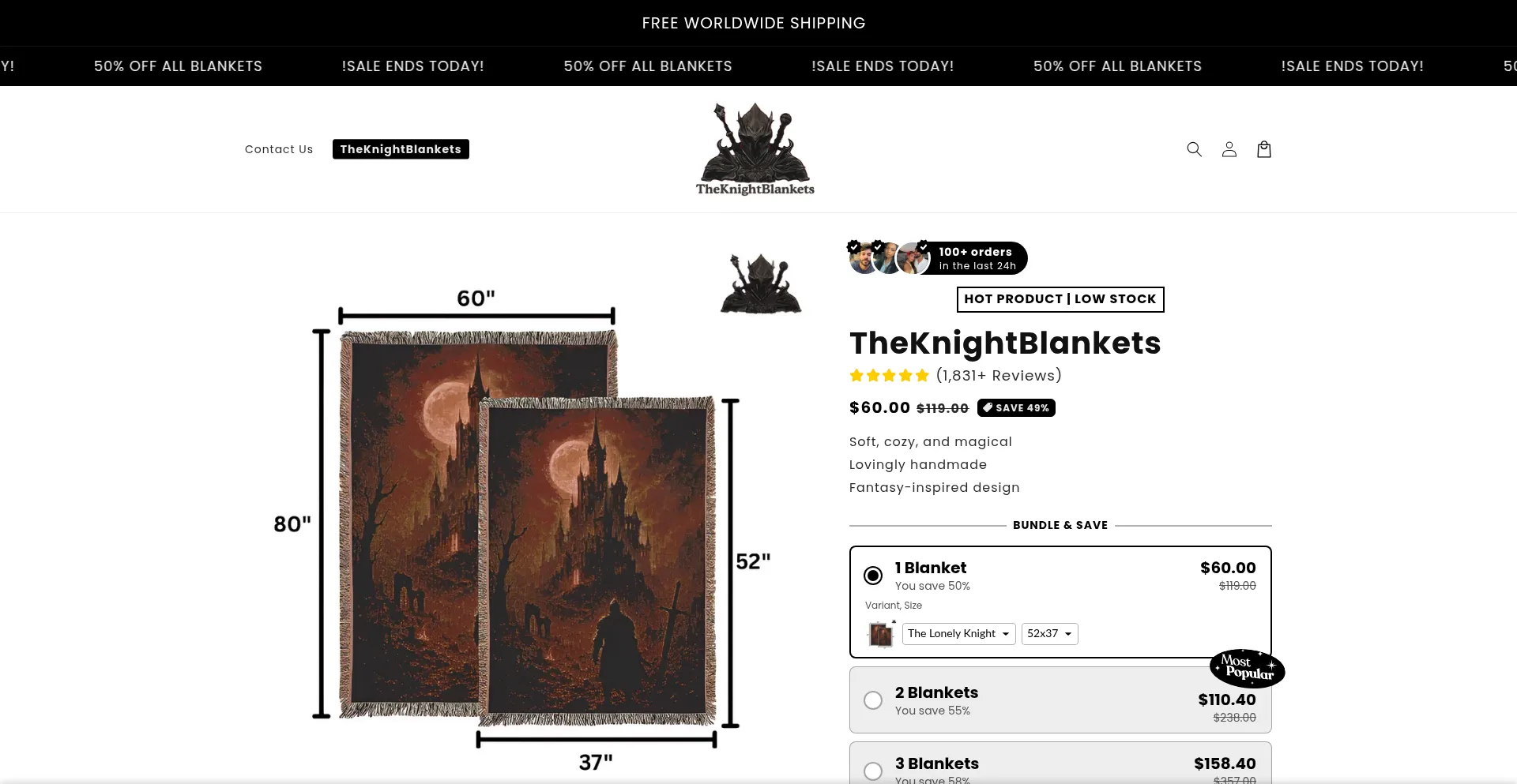Theknightblankets.store Site Web suspect