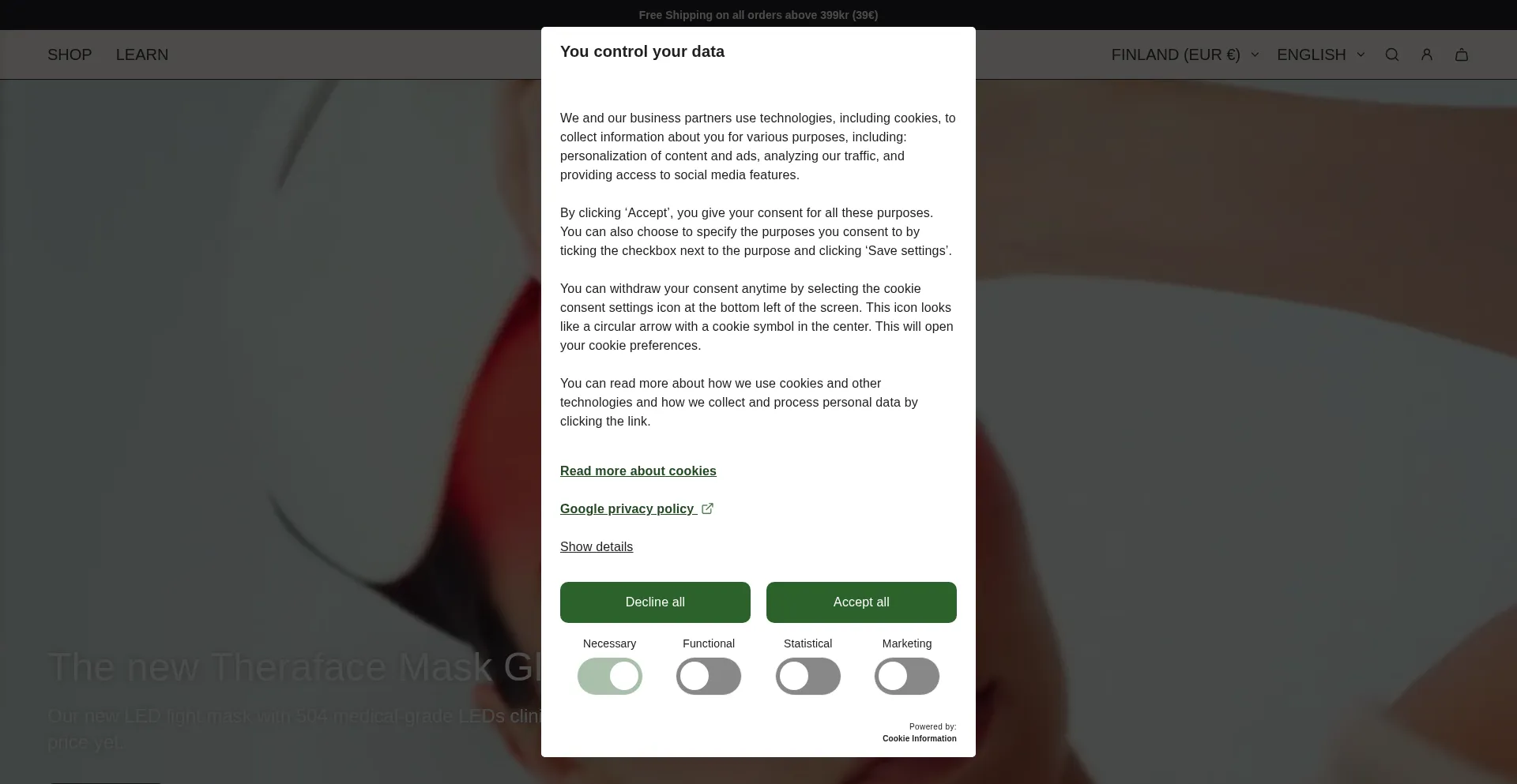 Le site web implémente des mécanismes de consentement aux cookies en conformité avec les réglementations de confidentialité telles que RGPD ou CCPA. Cela démontre que therabody.fi adhÚre aux standards de protection des données et fournit aux utilisateurs un contrÎle sur les pratiques de collecte de données personnelles.