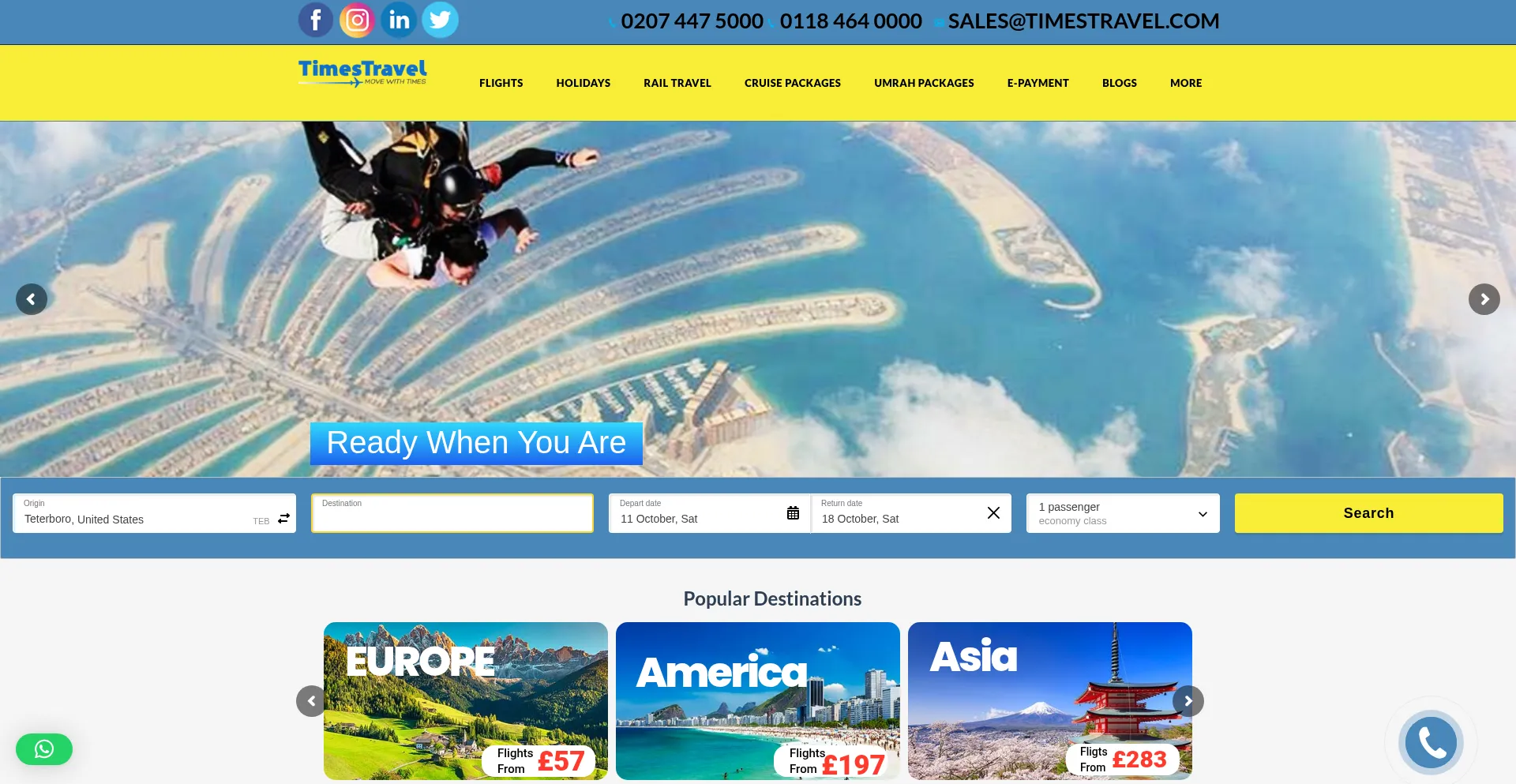 Holiday Packages with Times Travel in the UK. Booking flights times travels have Special offer, popular Destination, Luxury Cruise Deals.