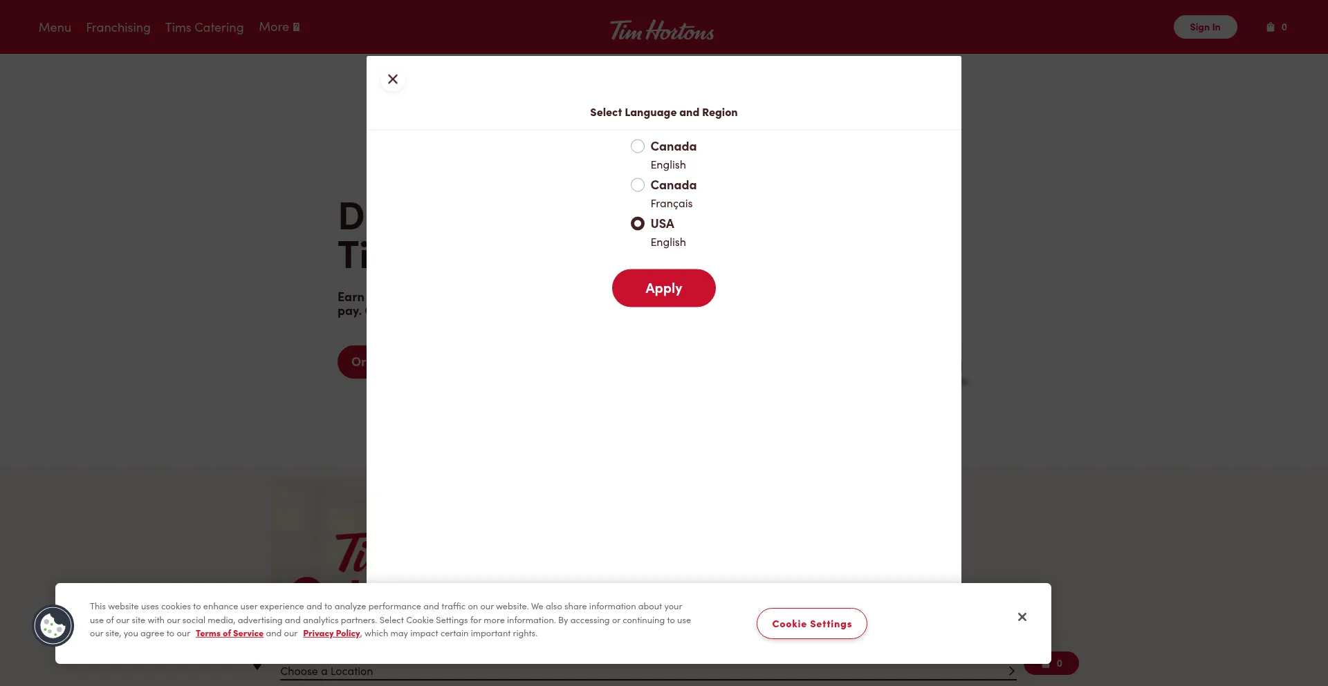 Le site web implémente des mécanismes de consentement aux cookies en conformité avec les réglementations de confidentialité telles que RGPD ou CCPA. Cela démontre que timhortons.com adhÚre aux standards de protection des données et fournit aux utilisateurs un contrÎle sur les pratiques de collecte de données personnelles.