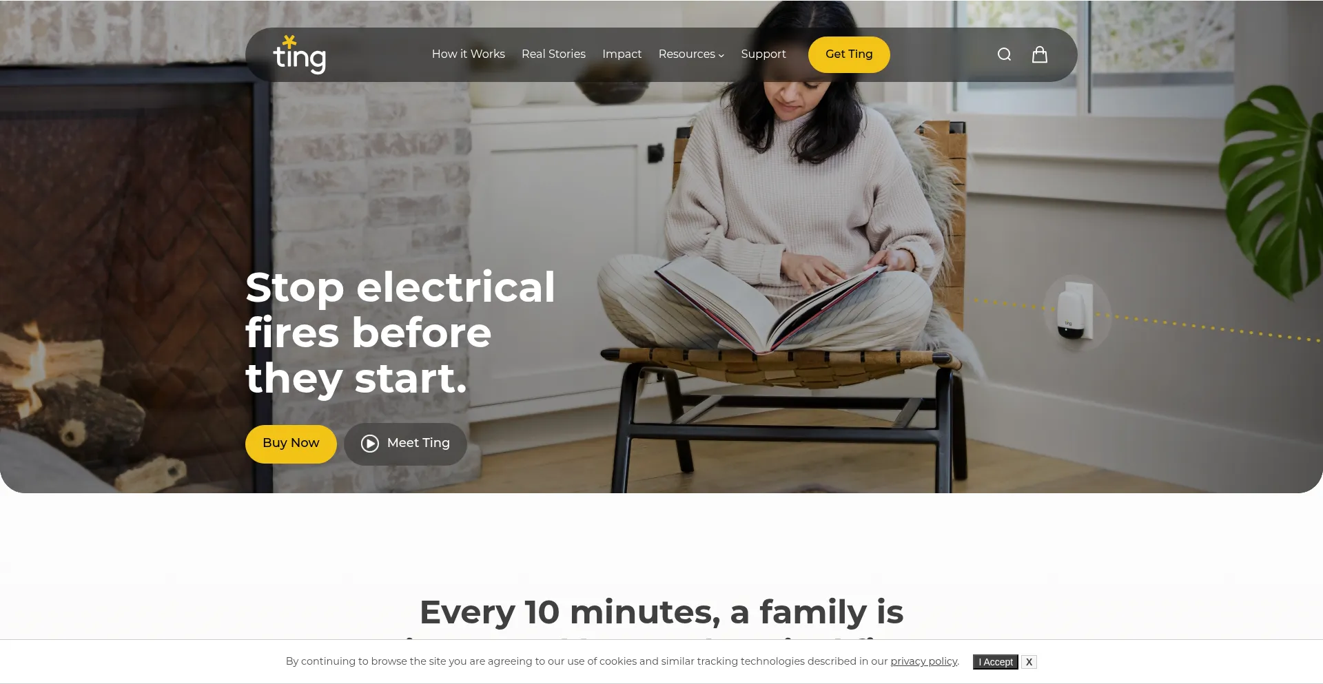 Trusted by 1M+ homes, Ting is a smart sensor and fire safety service that helps detect and prevent electrical hazards before a fire starts.