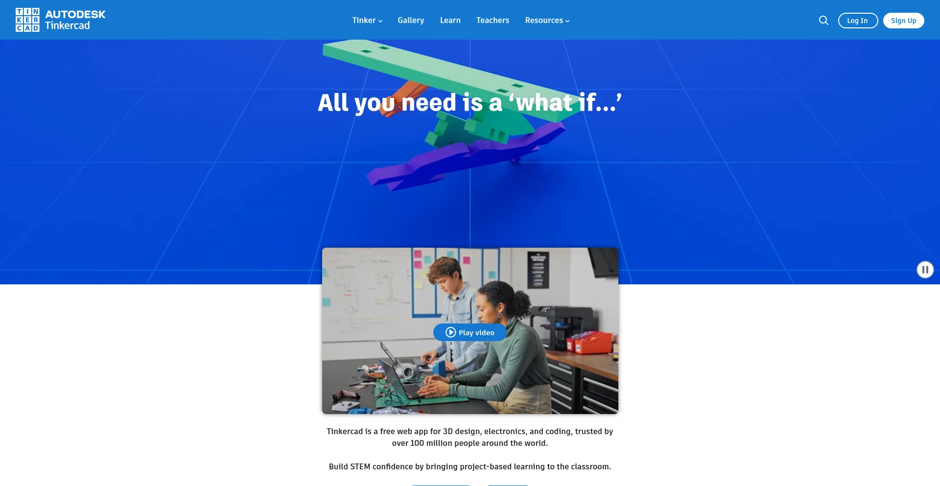 Tinkercad is a free, easy-to-use app for 3D design, electronics, and coding.