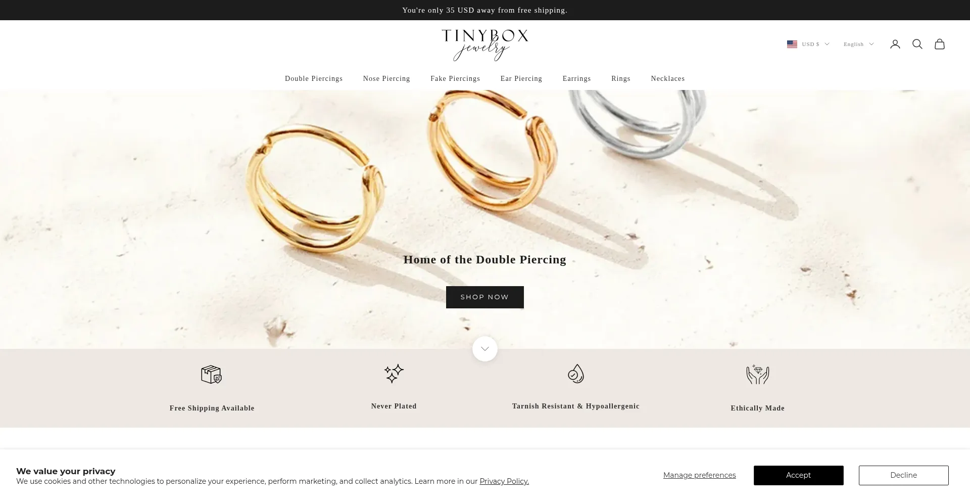 Affordable, trendy, custom fitted and handcrafted jewelry: ear and nose piercings, rings and necklaces. The Double Hoop was born by our hands. Based in Portugal, shipping worldw...