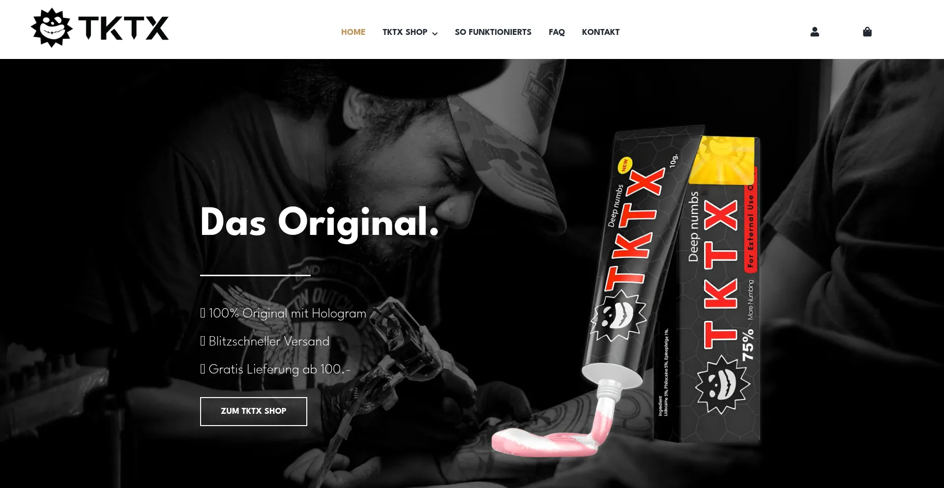 Original TKTX Salbe fĂŒr Tattoos, Piercing & PMU. Die stĂ€rkste BetĂ€ubungscreme fĂŒr eine schmerzfreie Sitzung. ✓ Schneller A-Post Versand aus der Schweiz.