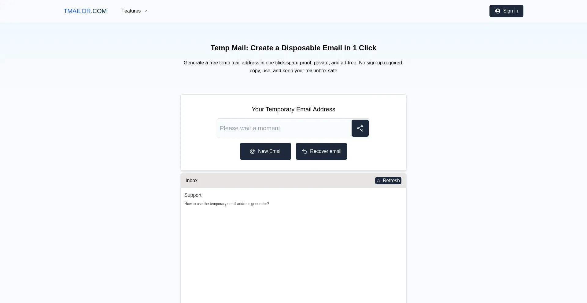 Temp Mail Generator - Get a new temporary email address - TMailor.com