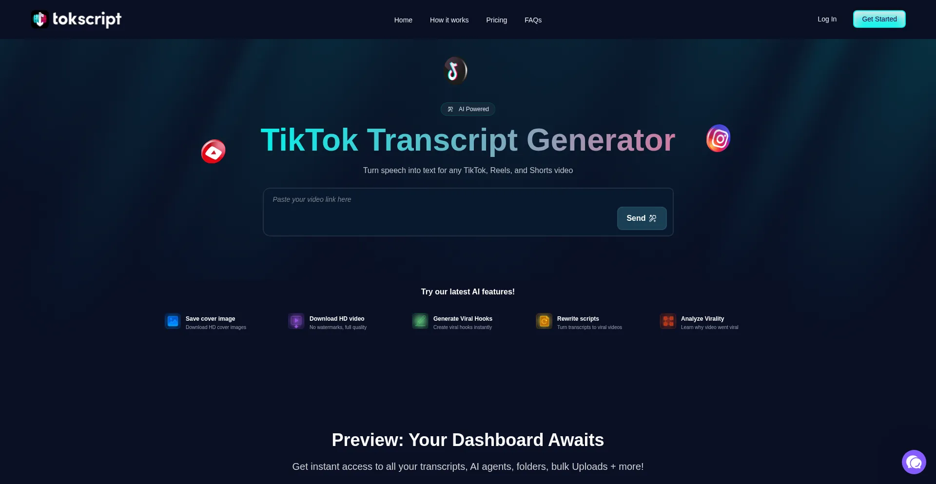 TokScript - Video Transcript Downloader for TikTok, Reels & Shorts Transcripts Instantly