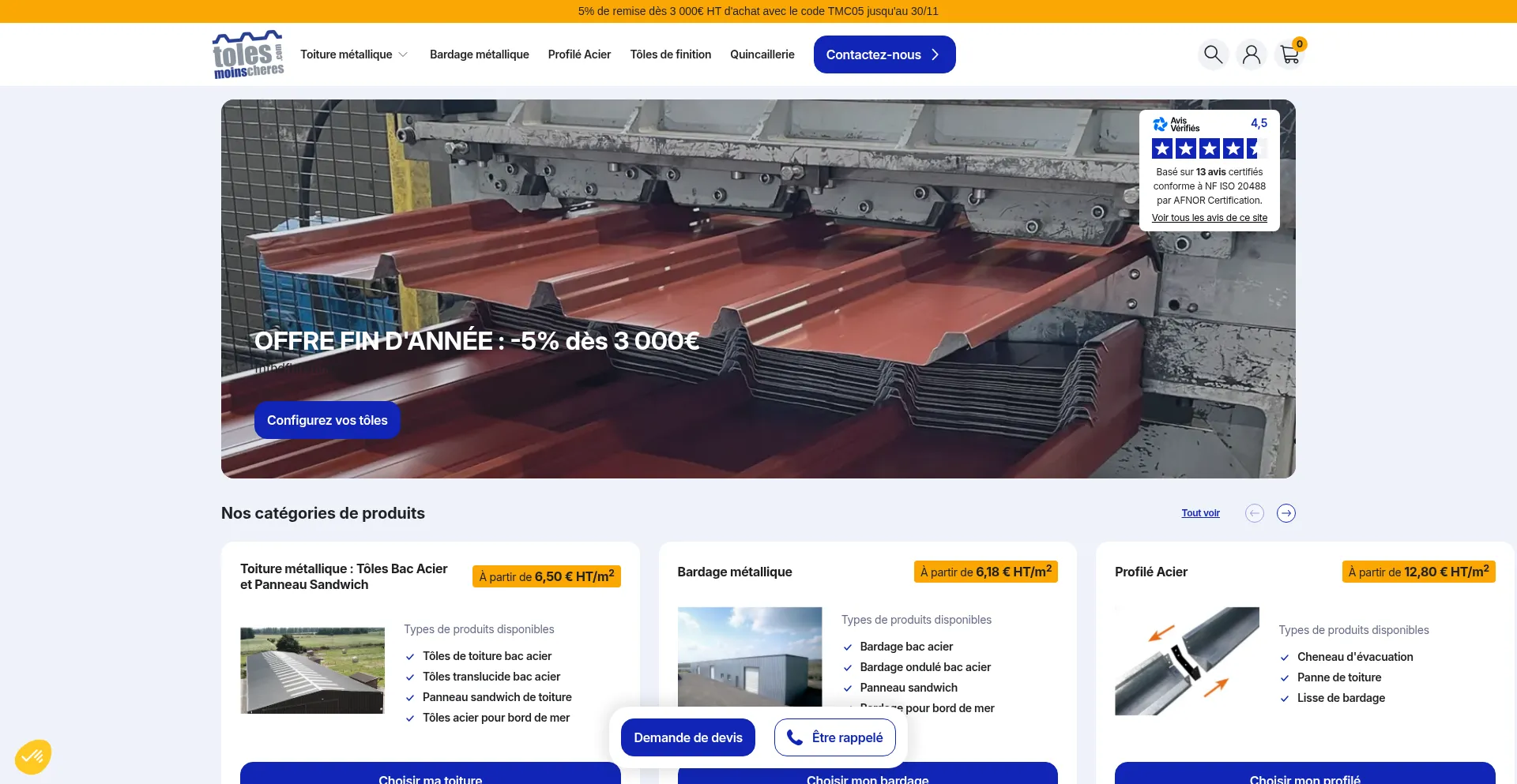 Commandez vos TĂŽles Bac Acier en Ligne dĂšs 6,18€/mÂČ | TĂŽles Moins ChĂšres