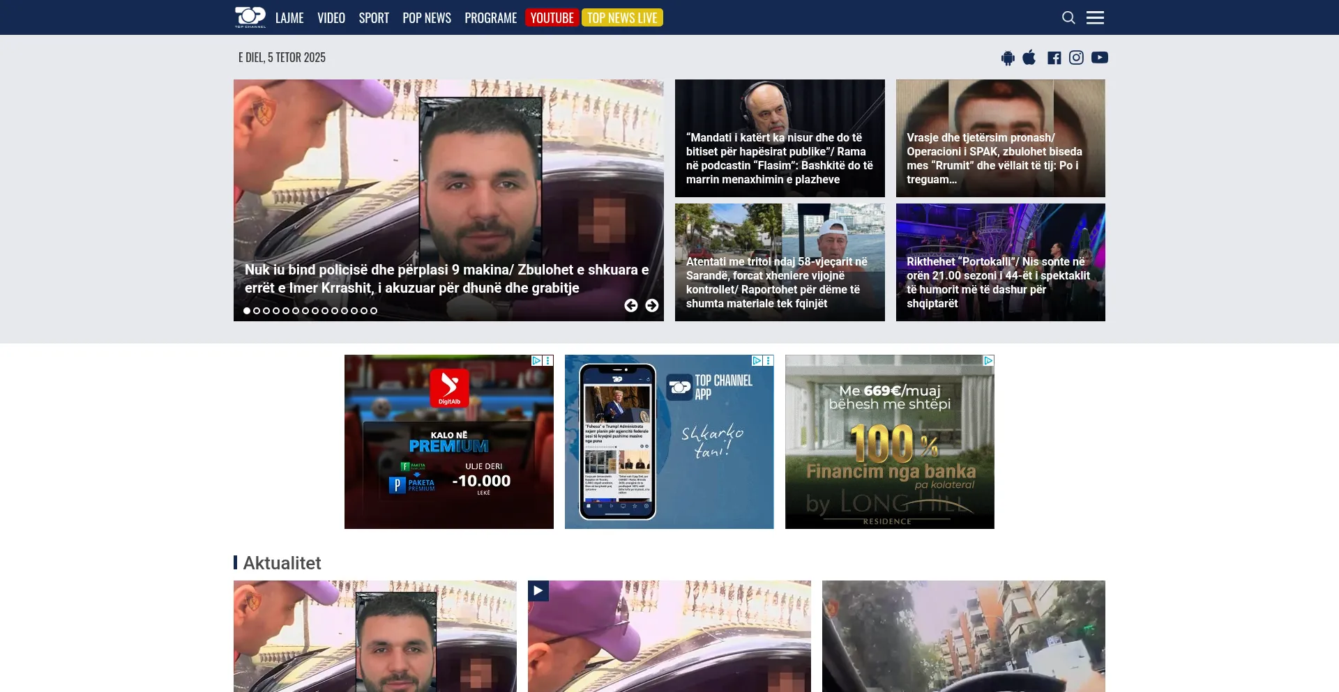 Top Channel - Lajmet e fundit minute pas minute, art, sport, Portokalli, Fiks Fare, Top Story, Perputhen, Big Brother Albania, Big Brother VIP, Shqiperia Live