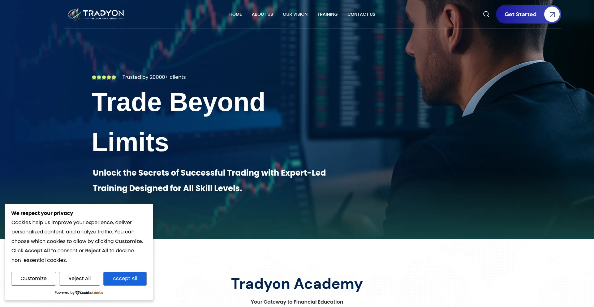 Trusted by 20000+ clients TRADE BEYOND LIMITS Unlock the Secrets of Successful Trading with Expert-Led Training Designed for All Skill Levels. Get in Touch Trusted by 20000+ cli...