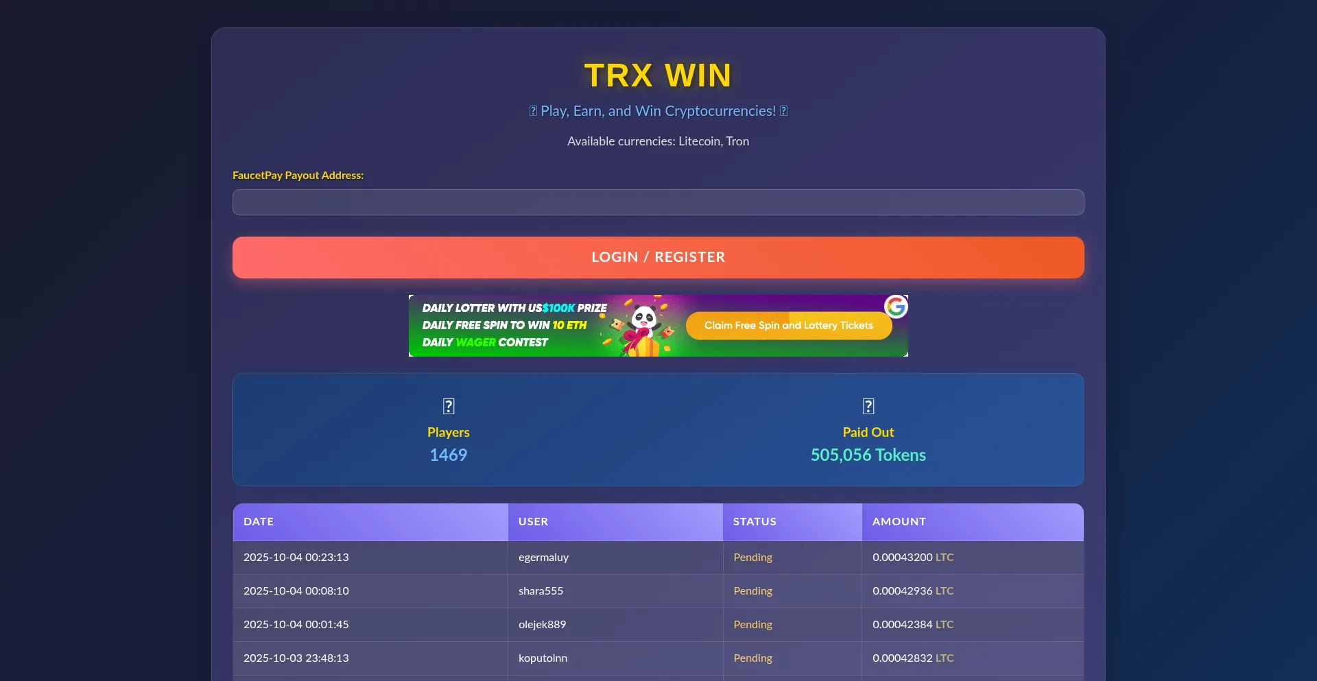 Trxwin.top Site Web suspect