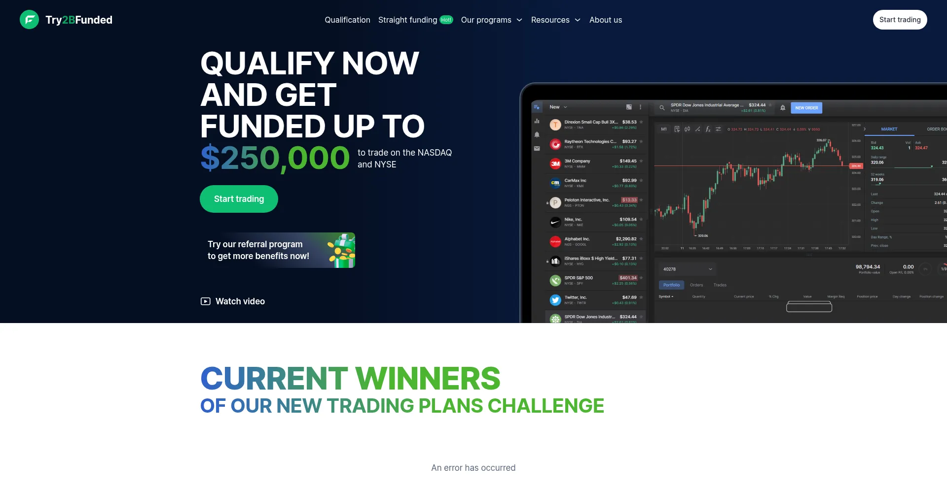 Try2BFunded is a trader selection program offering funded accounts to qualified traders to trade US stocks on NYSE, NASDAQ. Professional traders can obtain funding instantly wit...