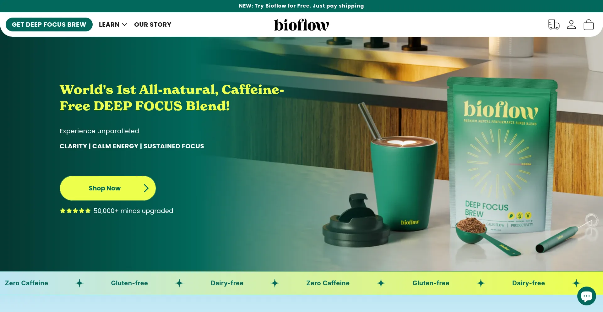 World's 1st all-natural, caffeine-free Deep Focus blend! Enjoy all the perks of coffee, minus the caffeine Engineered in Switzerland, made in the UK FREE gifts on your first sub...