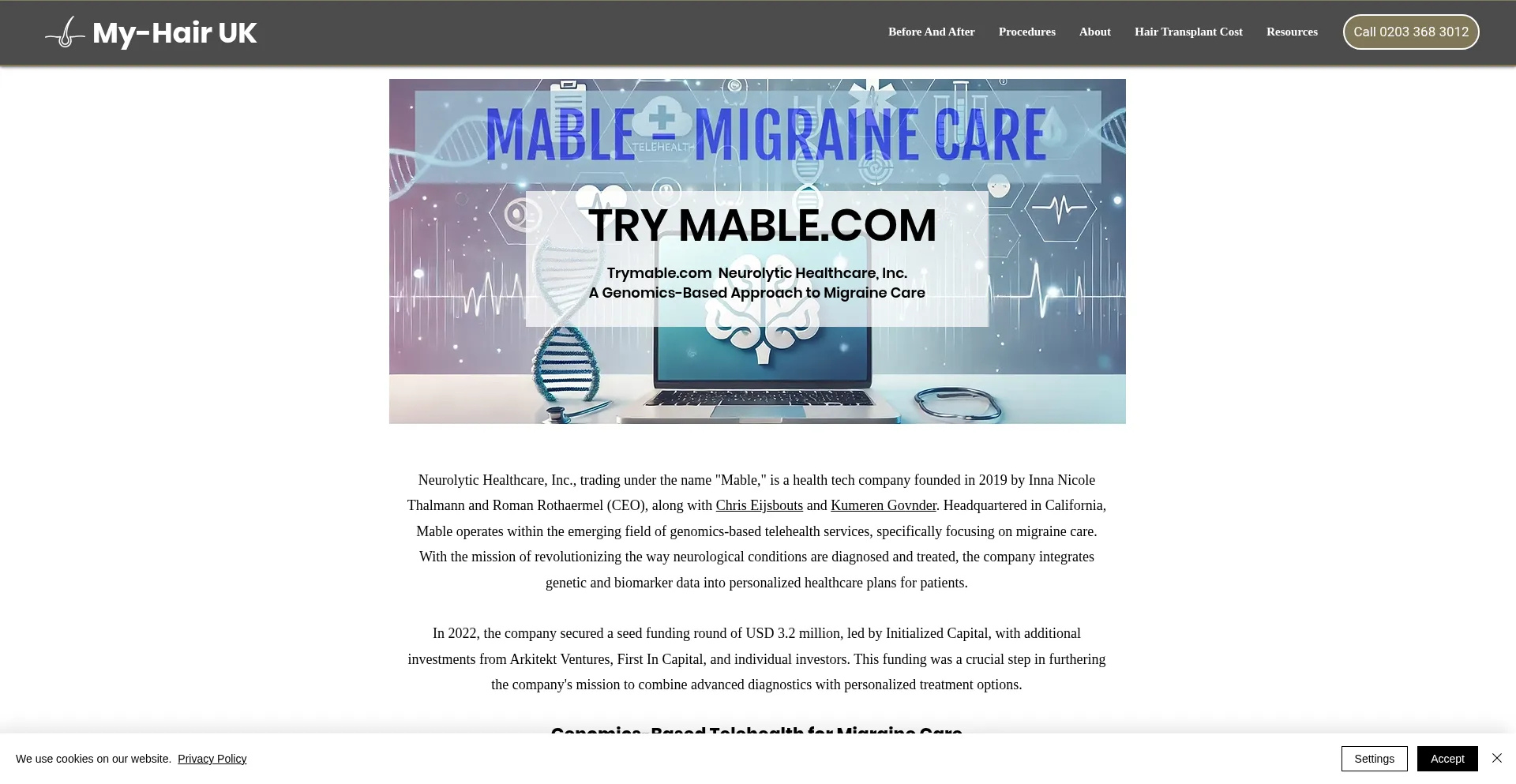 Examining Neurolytic Healthcare Inc, through its Try Mable platform, who combine genomics with telemedicine for personalised treatment of migraines.