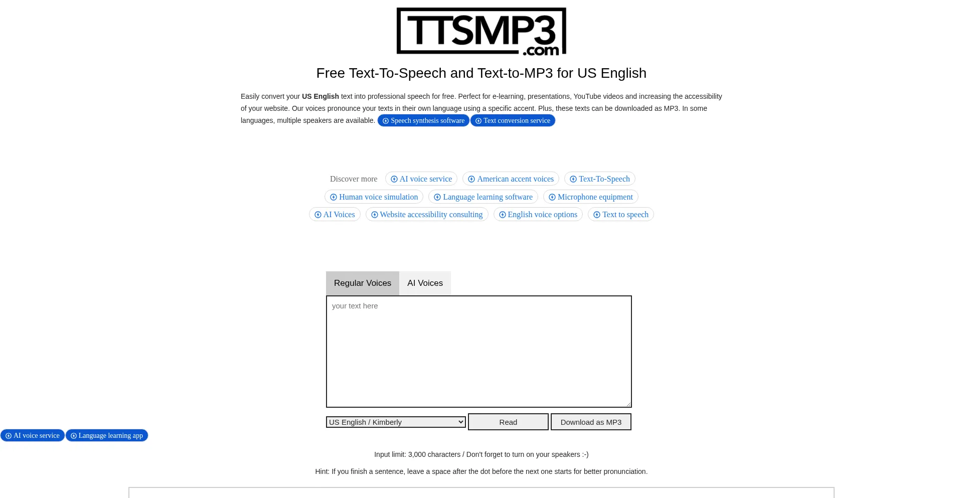 Free Text-To-Speech for 28+ languages & MP3 Download | ttsMP3.com