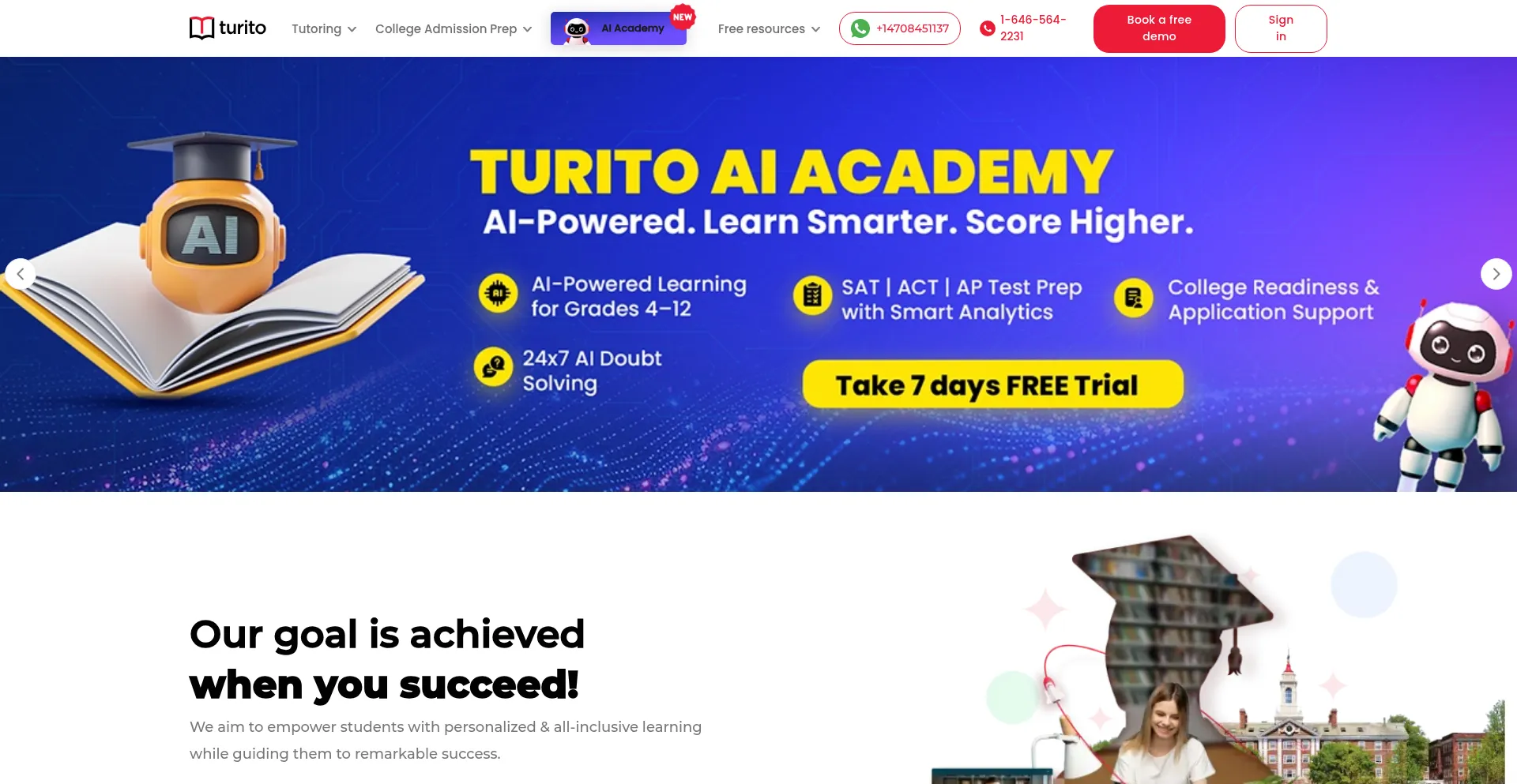 Turito is a live learning platform for SAT, ACT, AP, and online One-On-One Tutoring Classes for Grades 1st to 12th. Access free practice tests, study materials & much more.