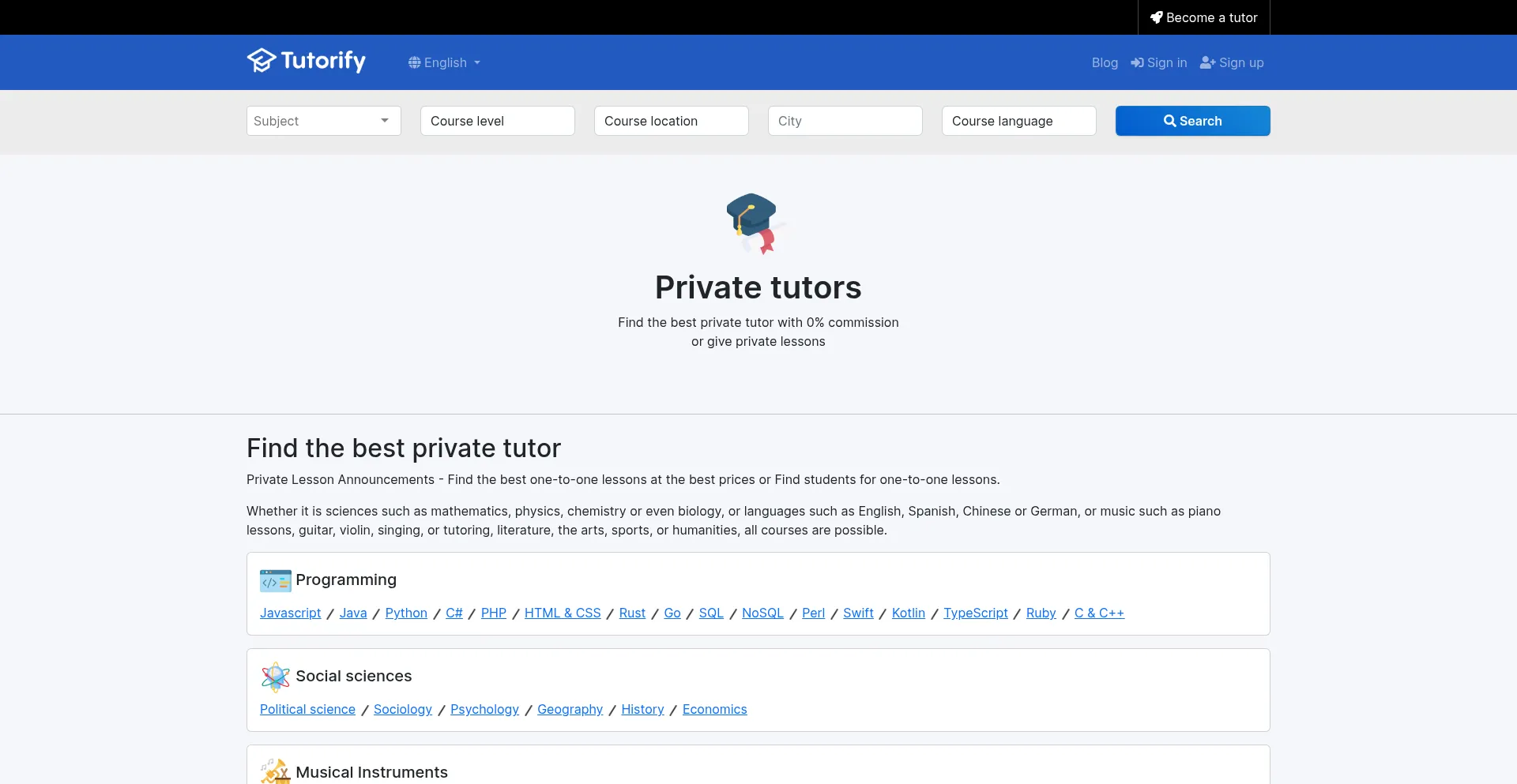 Private tutor. Find the best private tutor with 0% commission or give private lessons.