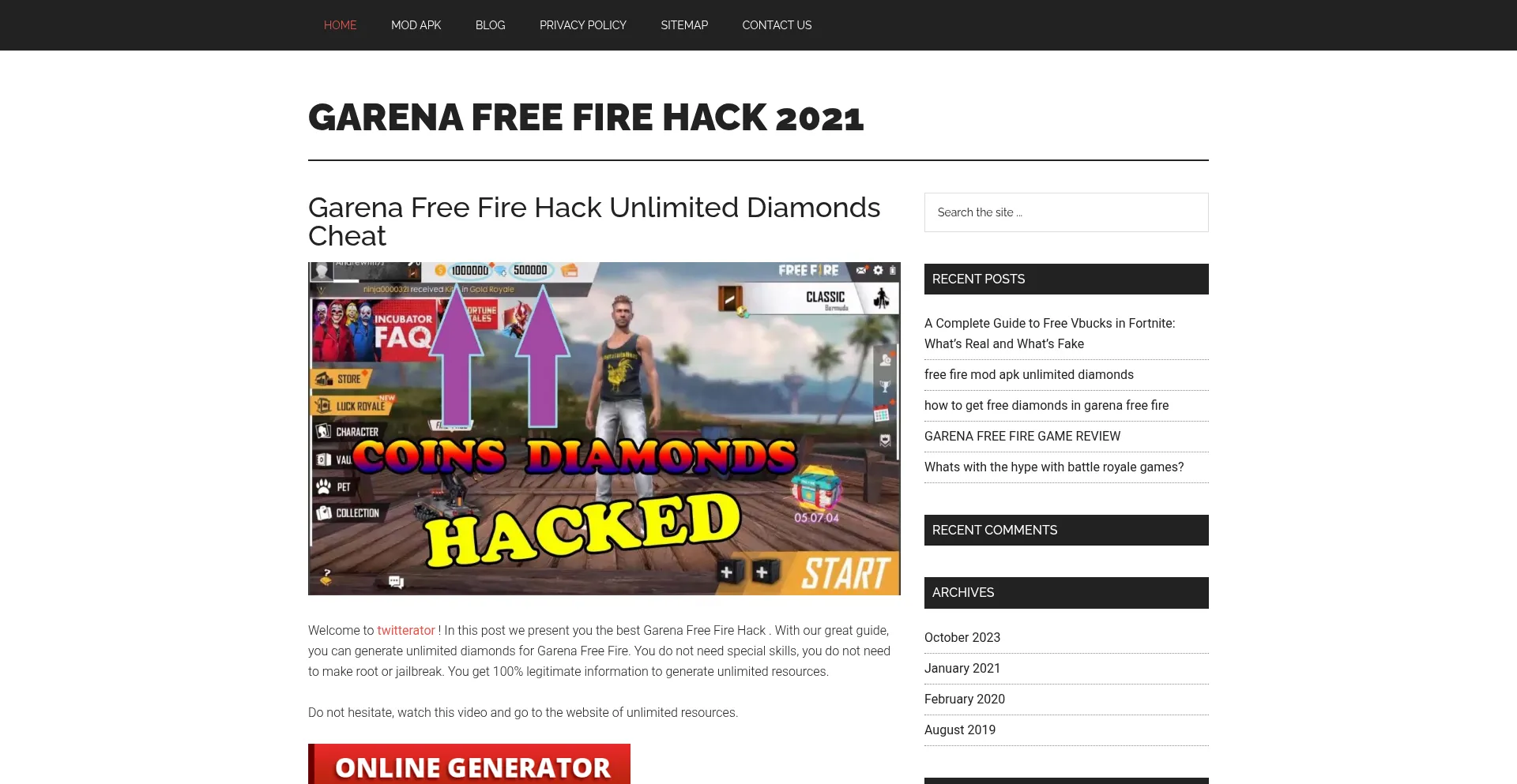 Welcome to twitterator ! In this post we present you the best Garena Free Fire Hack . With our great guide, you can generate unlimited diamonds for Garena Free