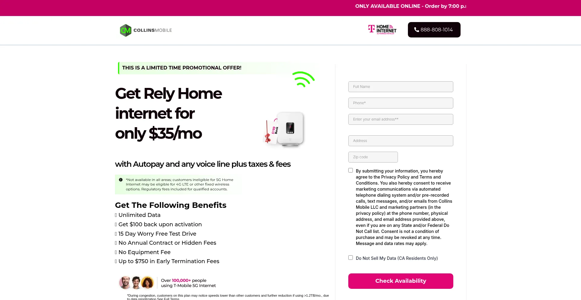 Unlimited5ghomeinternet.com Site Web suspect