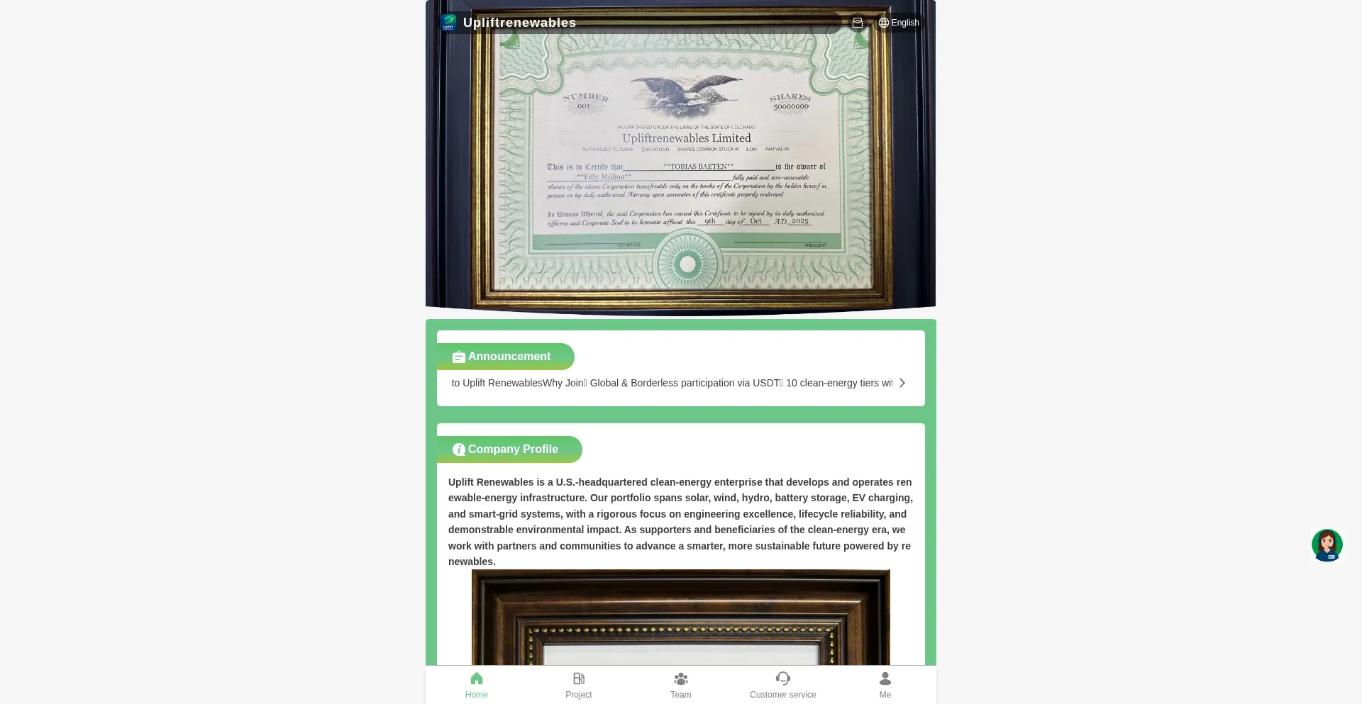 Uplift Renewables is a U.S.-headquartered clean-energy enterprise that develops and operates renewable-energy infrastructure.