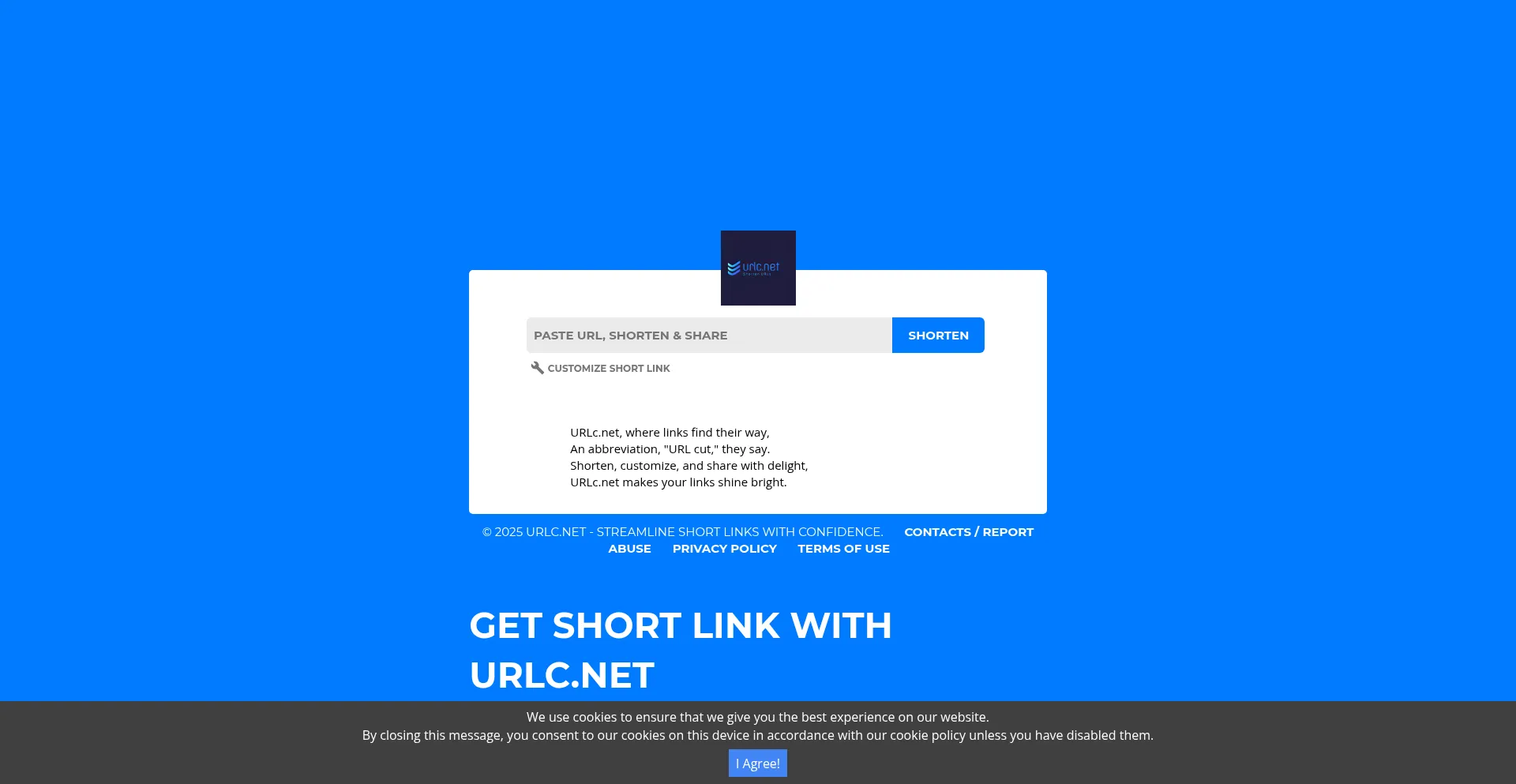 Simplify and share your links effortlessly with URLC.net. Shorten long URLs, protect your data, and gain insights with our reliable link management service.