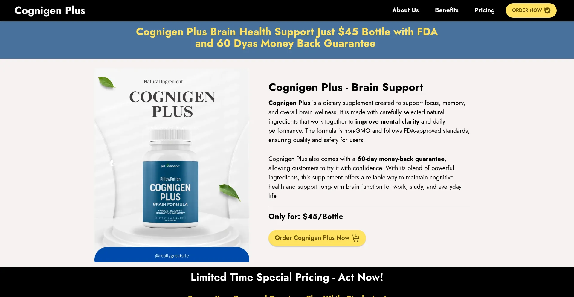 Cognigen Plus supports brain health, memory, and focus naturally, giving you sharper thinking with FDA quality and a trusted money back guarantee.