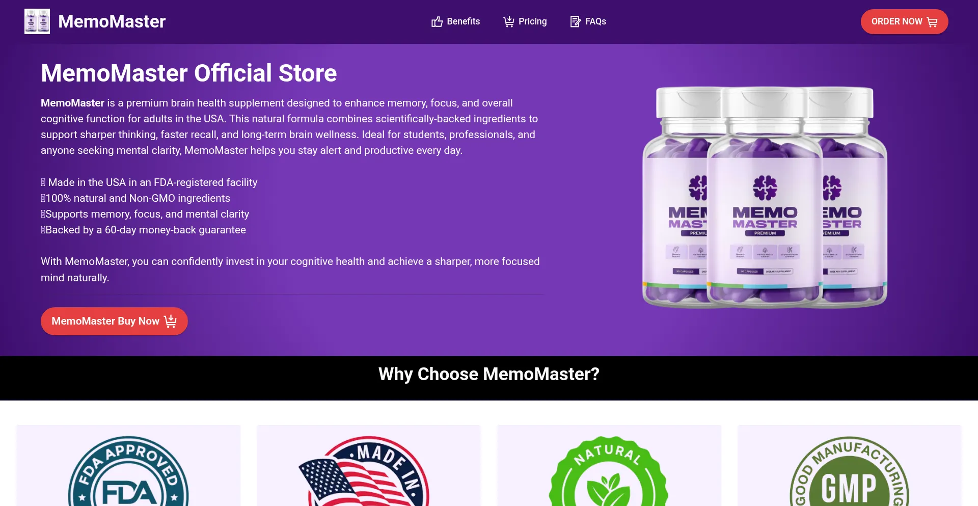 MemoMaster improves memory, reduces brain fog, and supports focus. Trusted natural brain supplement for adults in the USA. Try it risk-free today!