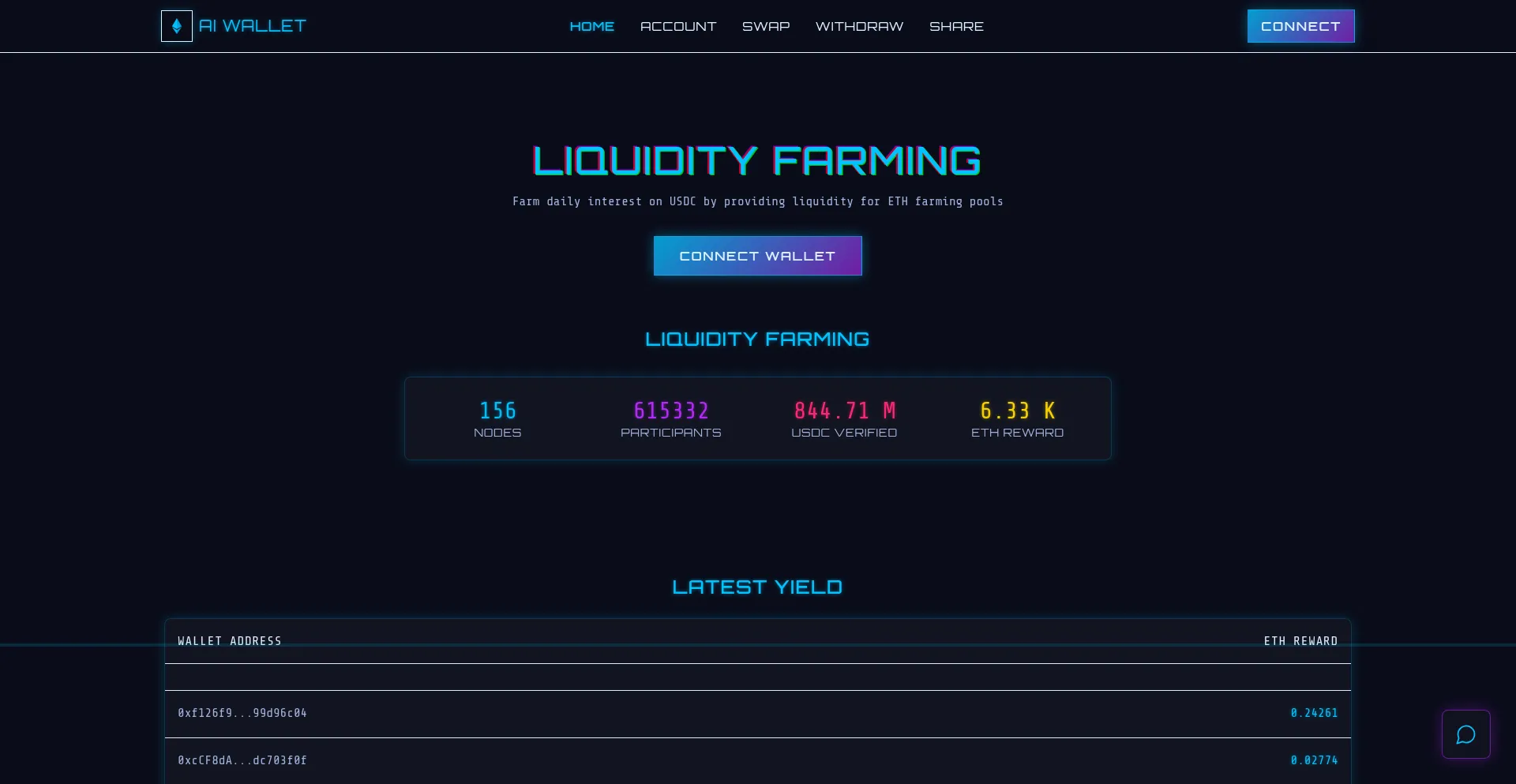 Farm daily interest on USDC by providing liquidity for ETH farming pool
