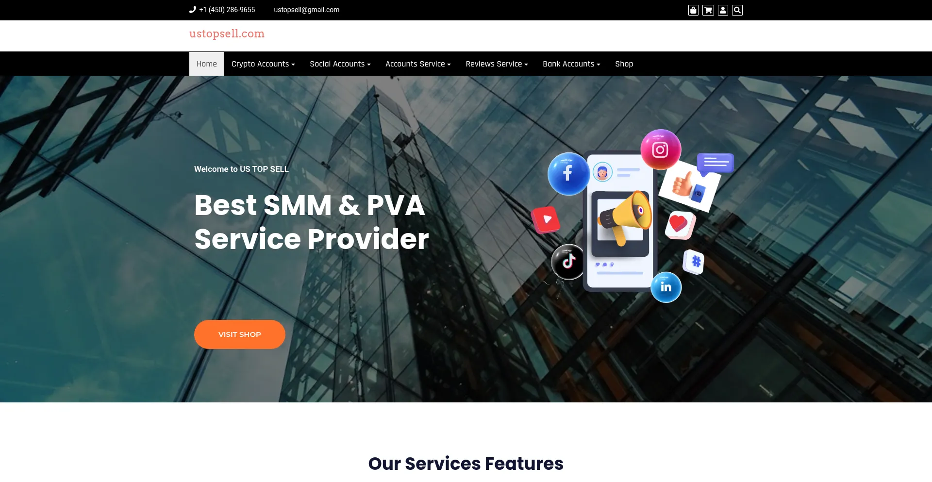 La présence de liens de médias sociaux sur le site web indique que ustopsell.com maintient des comptes officiels sur les médias sociaux, ce qui est un signe positif de crédibilité et d'engagement.